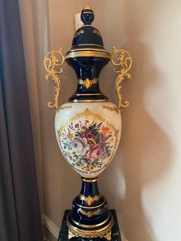 Ornate Cobalt Blue & Gold Decorative Vase + Marble Stand # 2