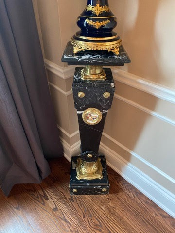 Ornate Cobalt Blue & Gold Decorative Vase + Marble Stand # 2.