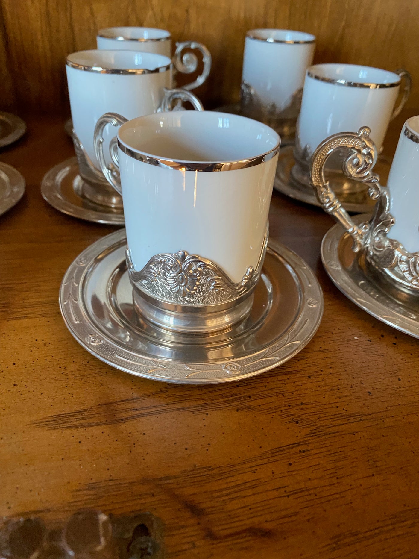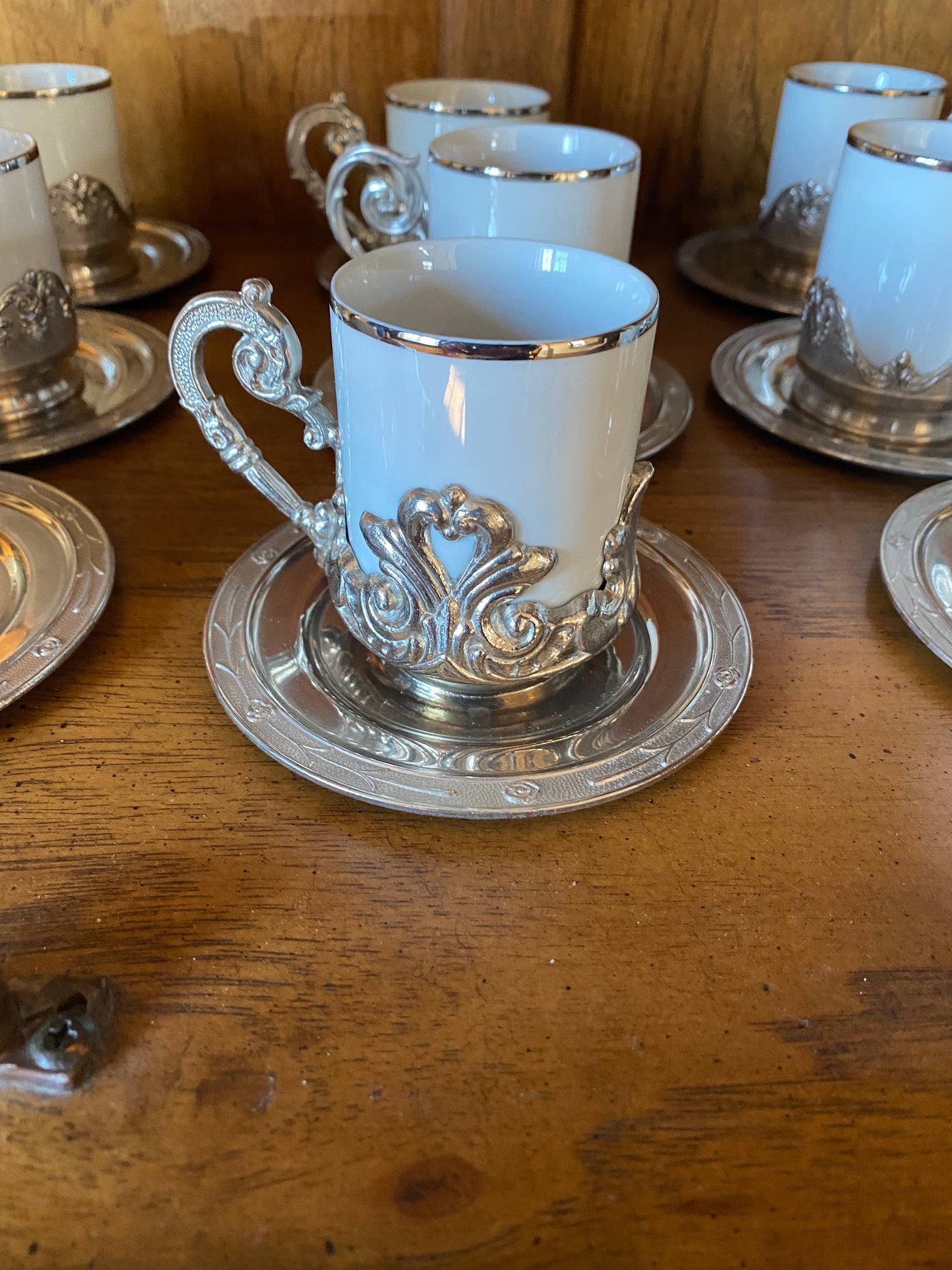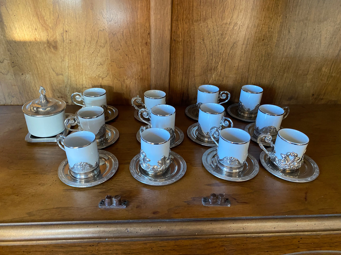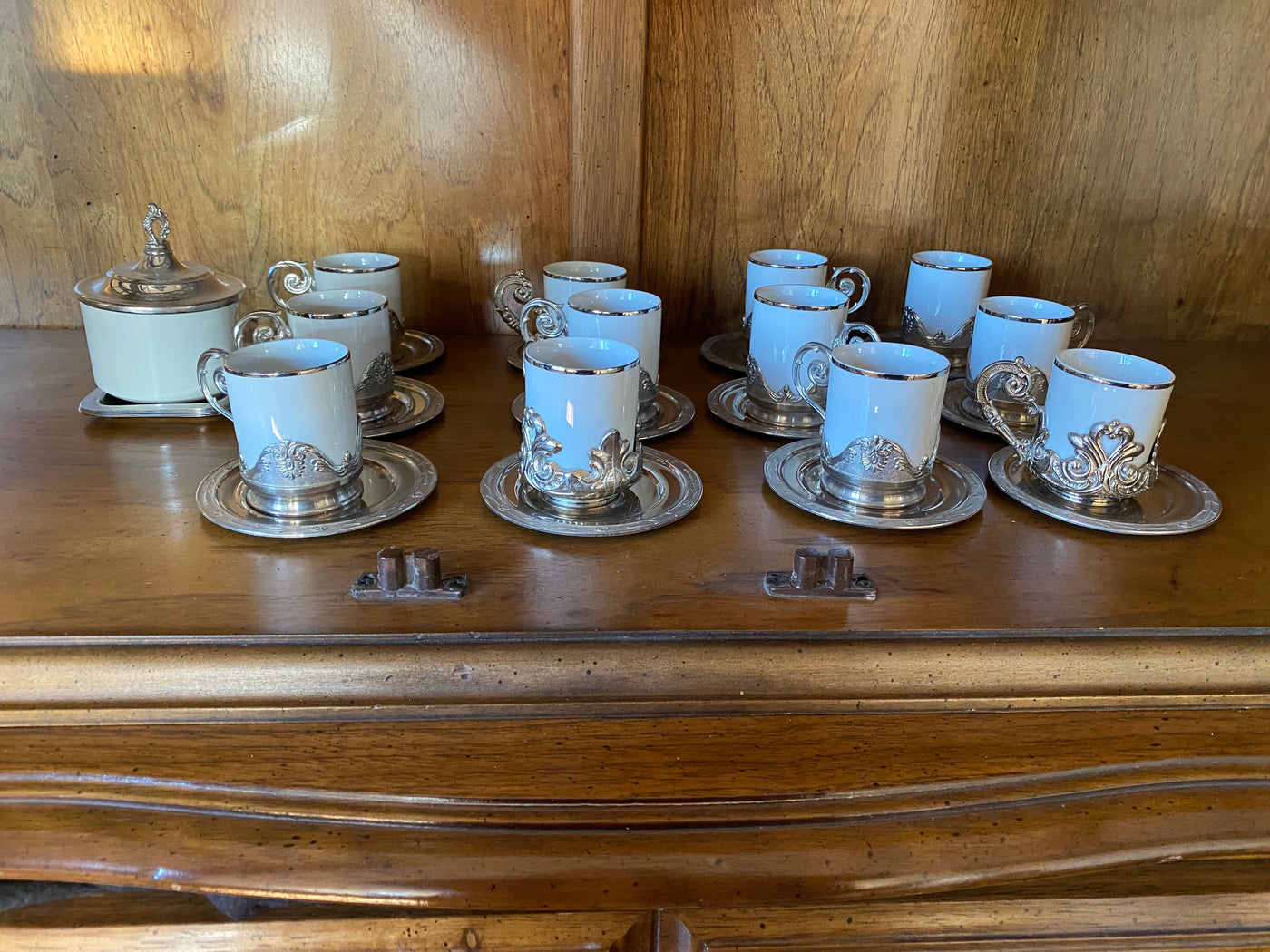 Set Of 12 Monopoli Demitasse Cup & MOD AB DEP 800 Italy Metal Holder