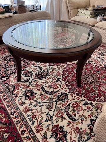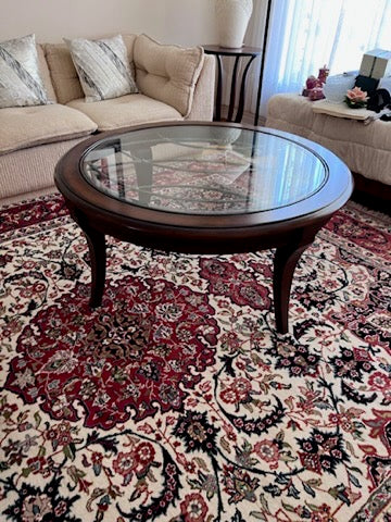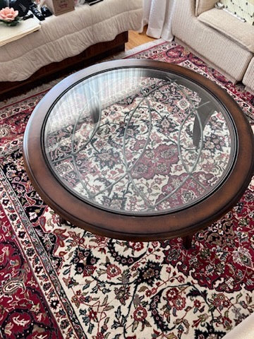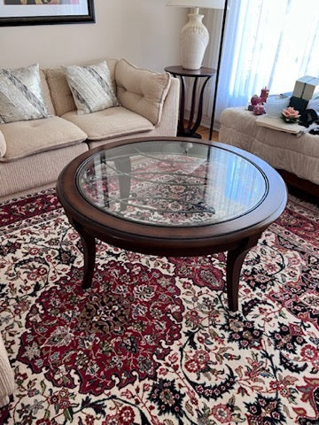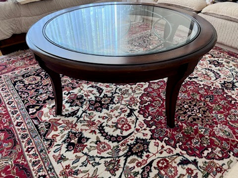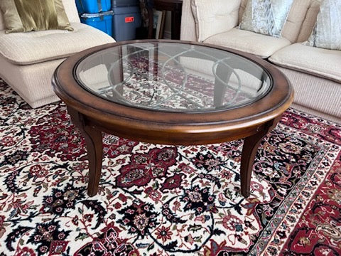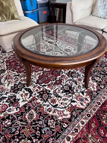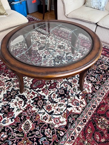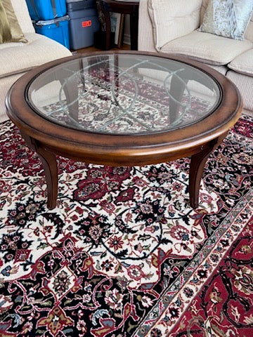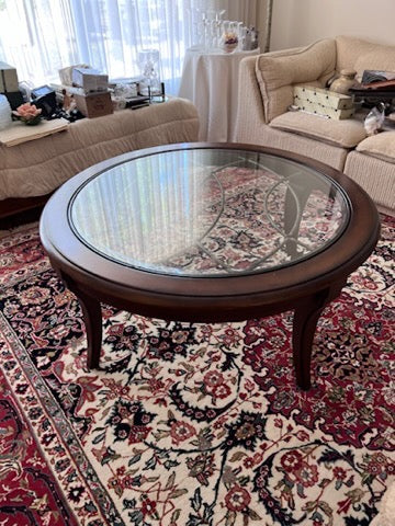 Round Wood and Glass Coffee Table- Made in Indonesia.