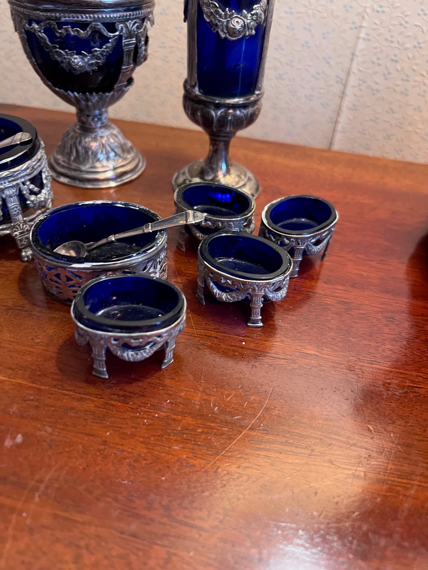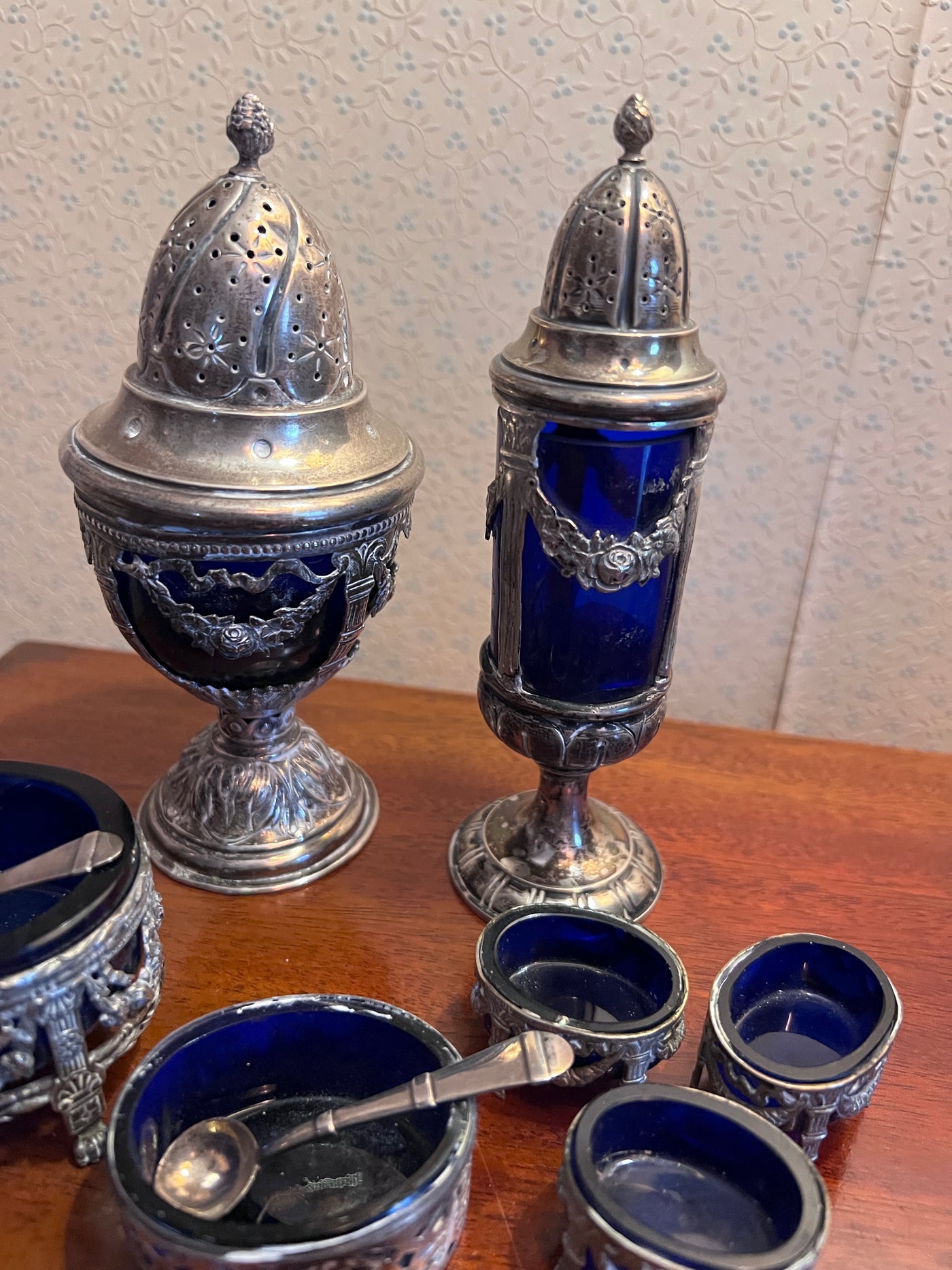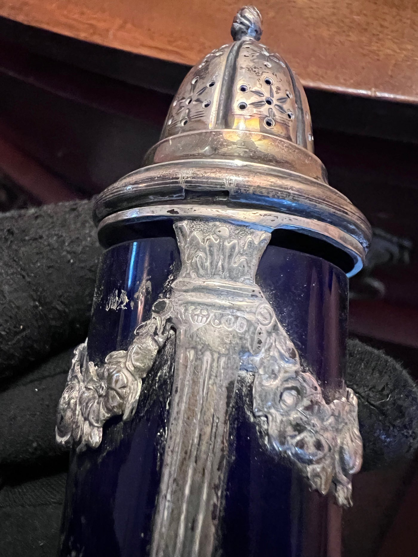 ANTIQUE GERMAN .800 SILVER COBALT BLUE GLASS LINER LOT.