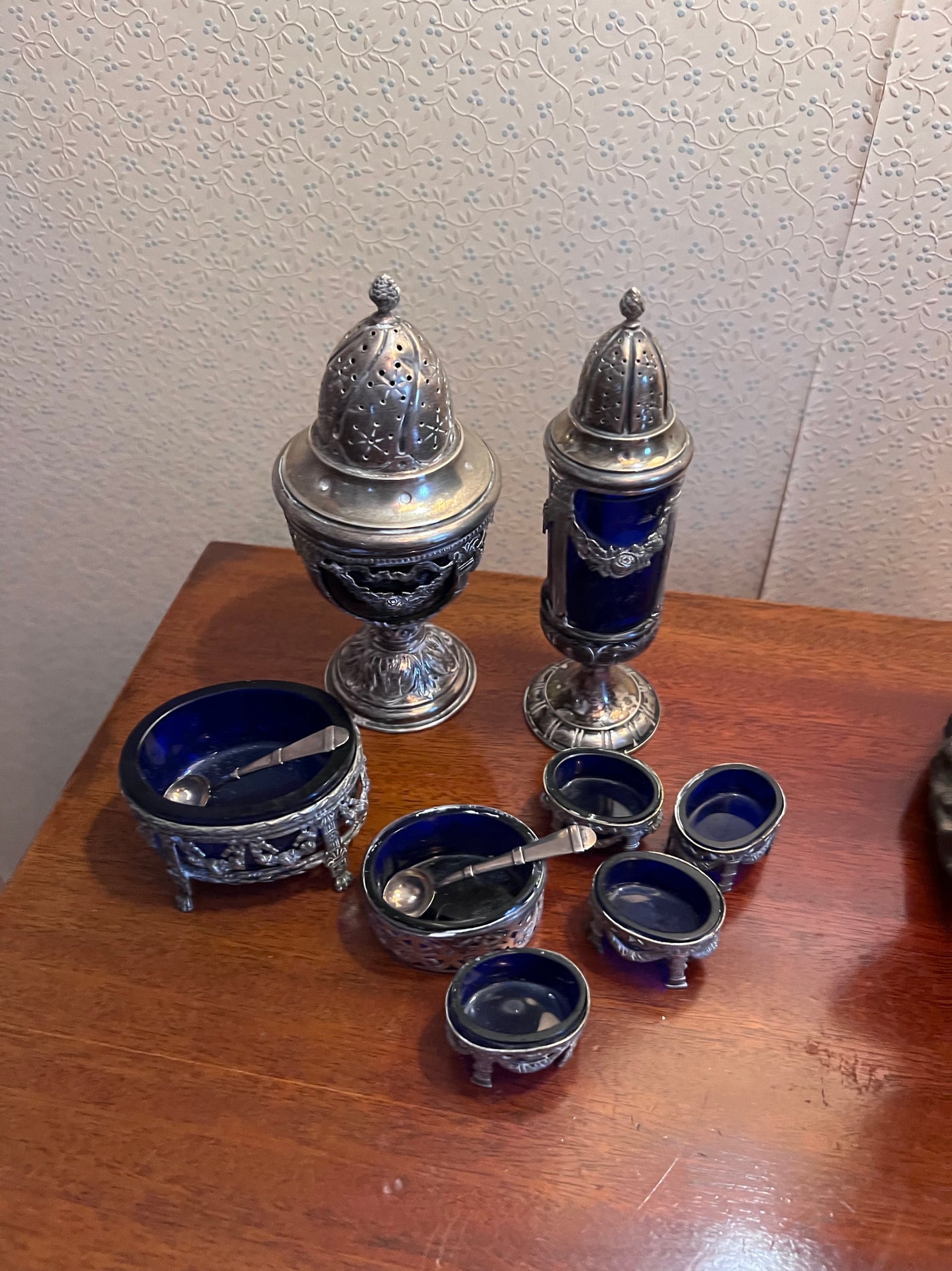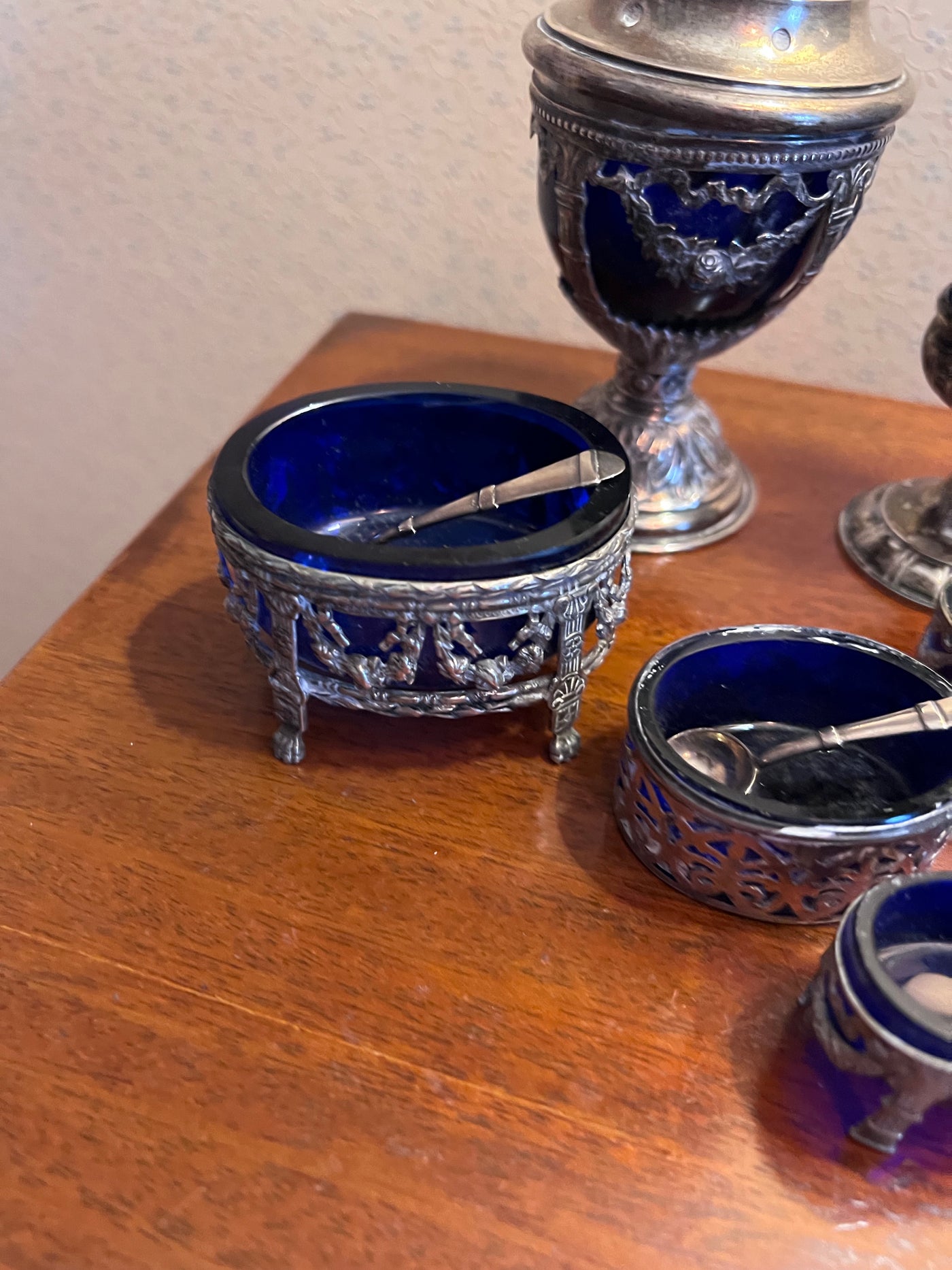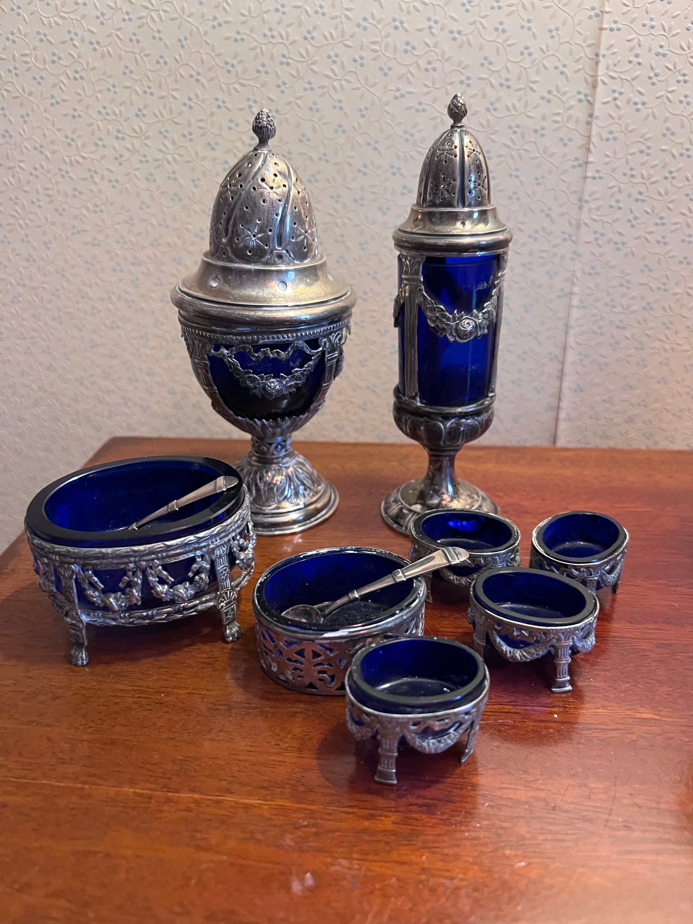 ANTIQUE GERMAN .800 SILVER COBALT BLUE GLASS LINER LOT.