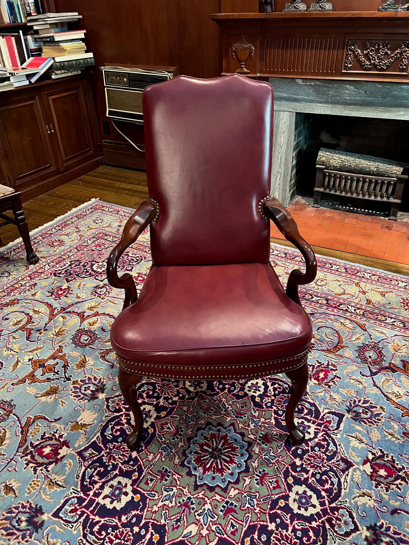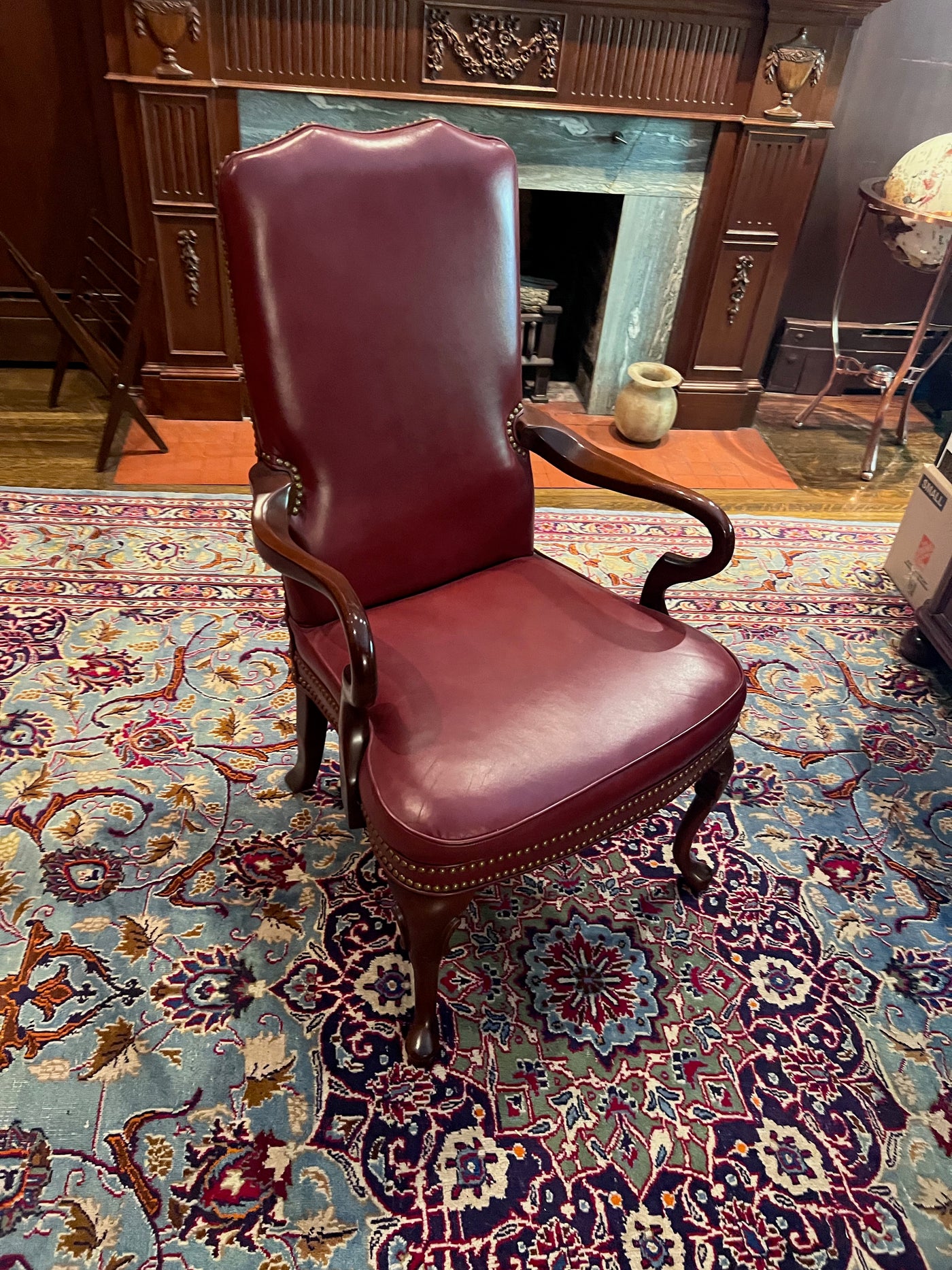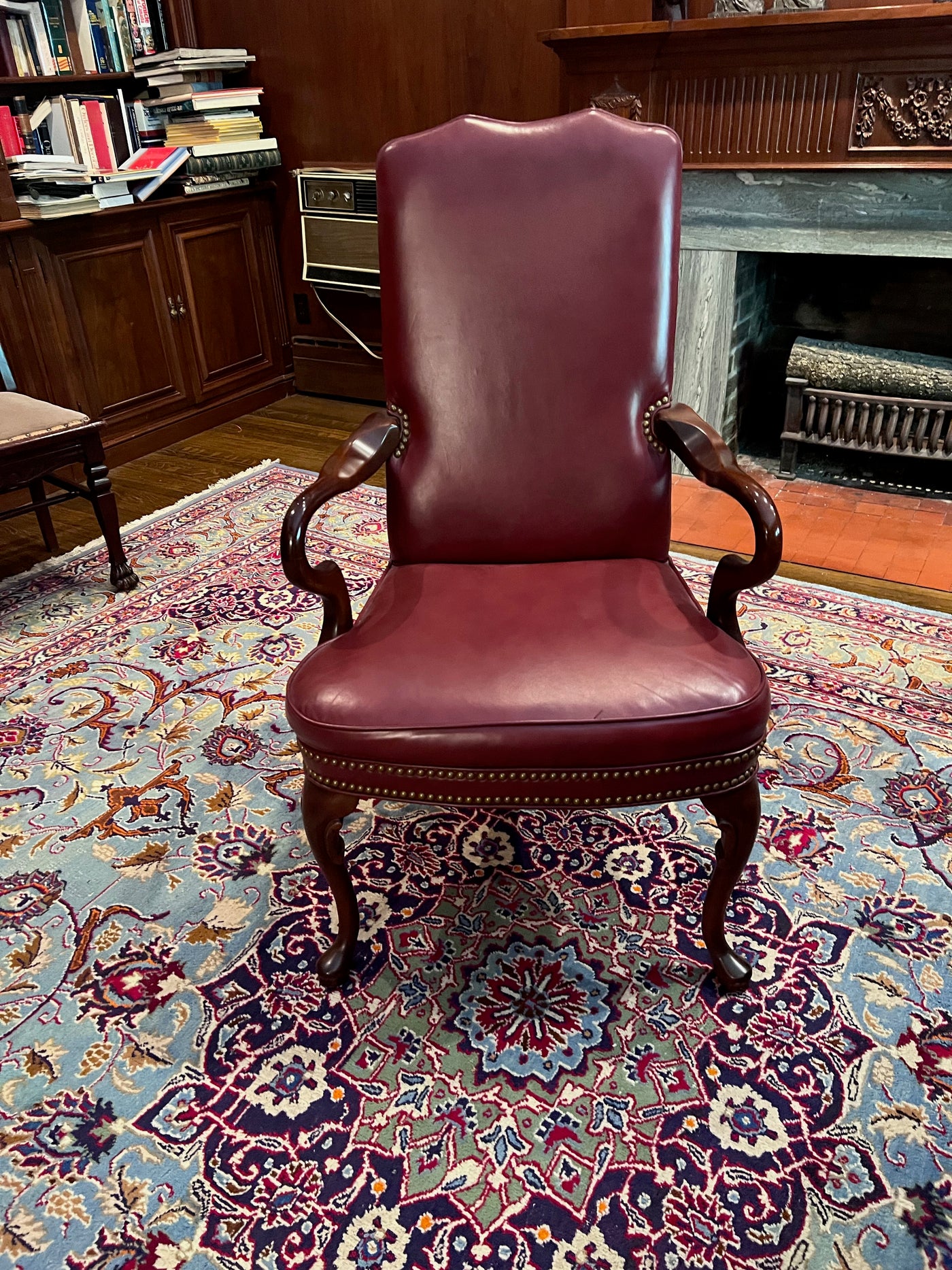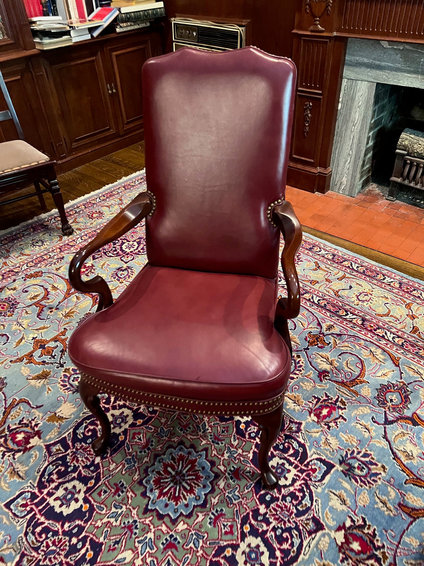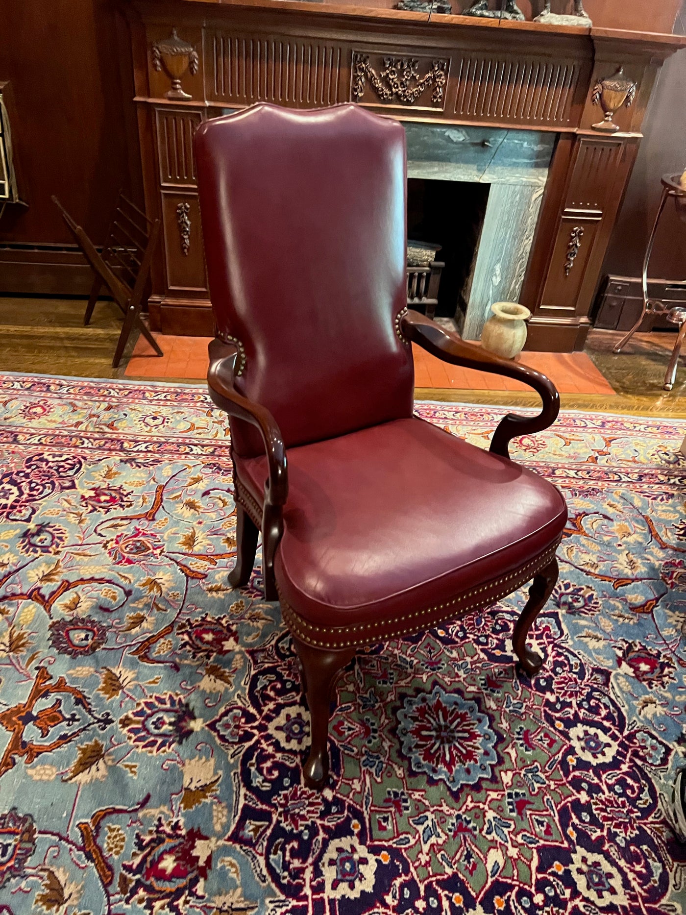 Vintage Brown Leather Executive Chair, Nailhead Trim.