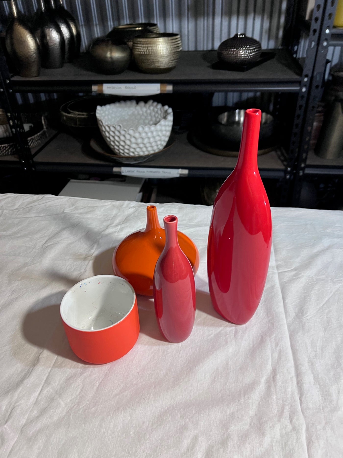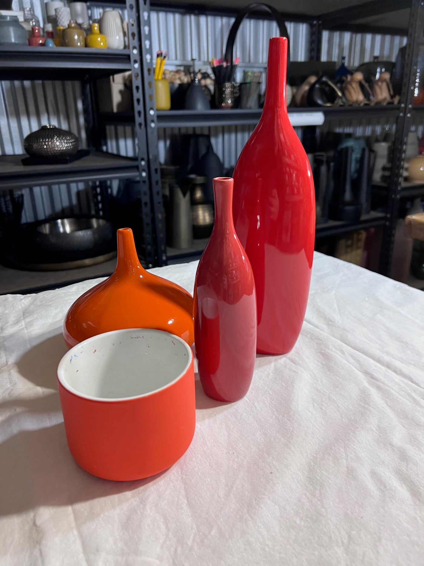 Red, Orange Vase/Bowl Lot.