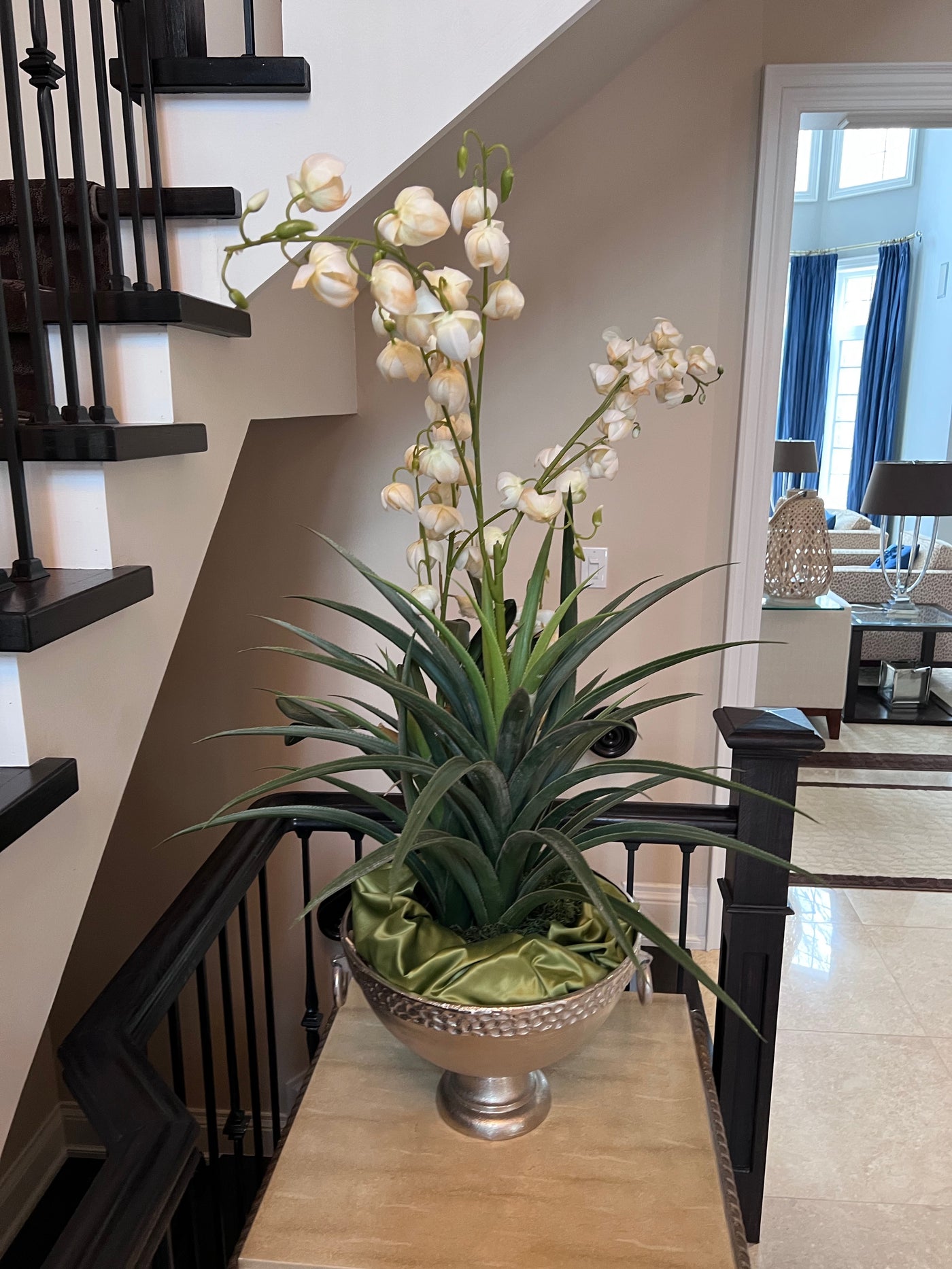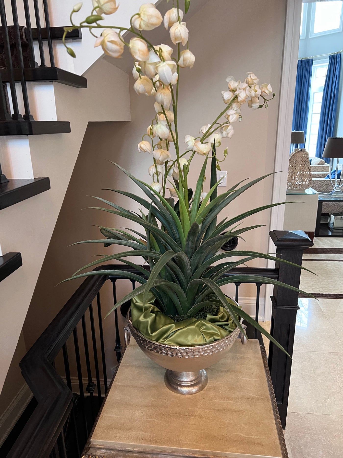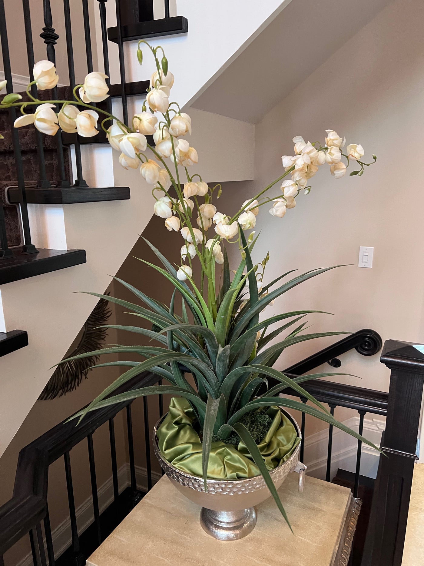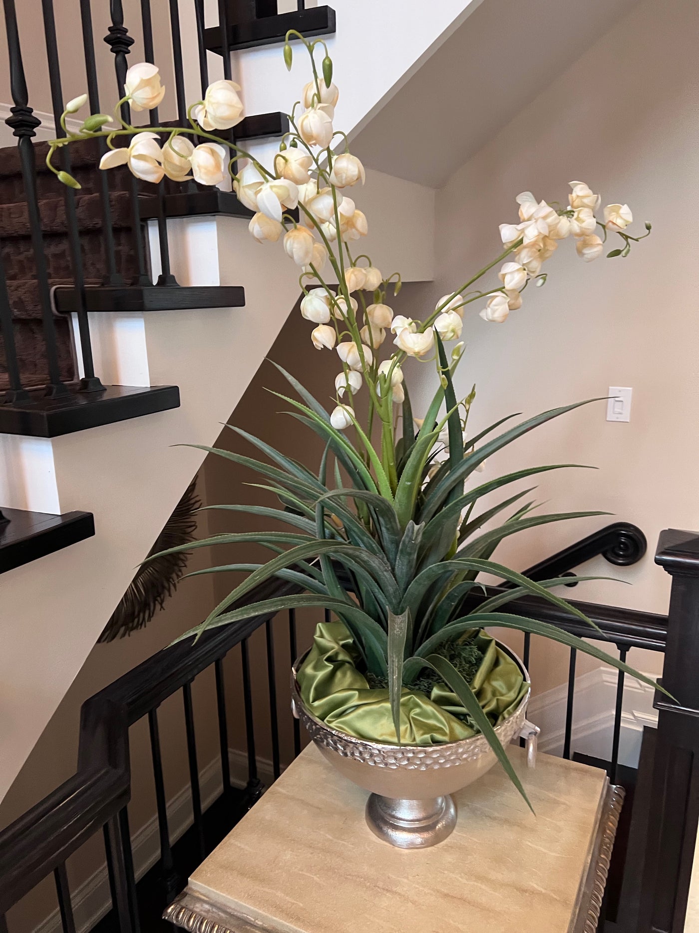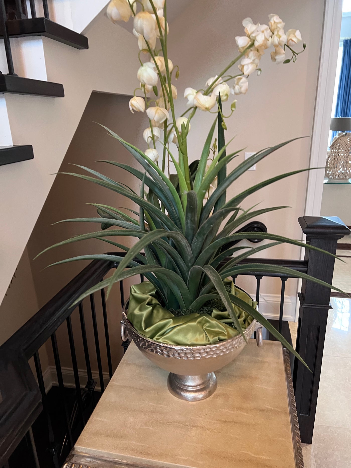 Faux Plant In Silver Bowl.