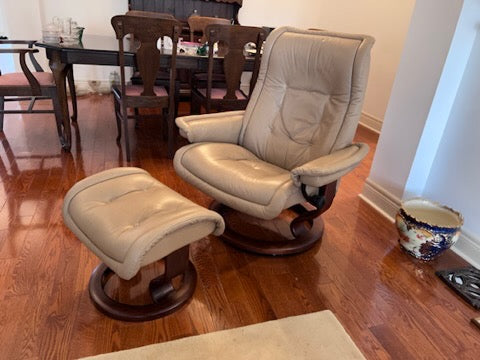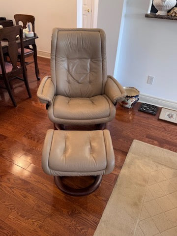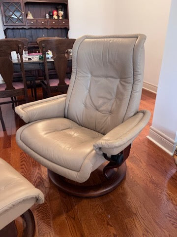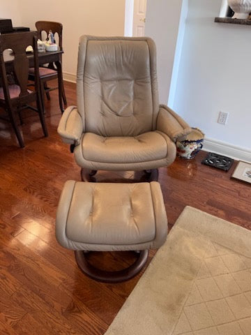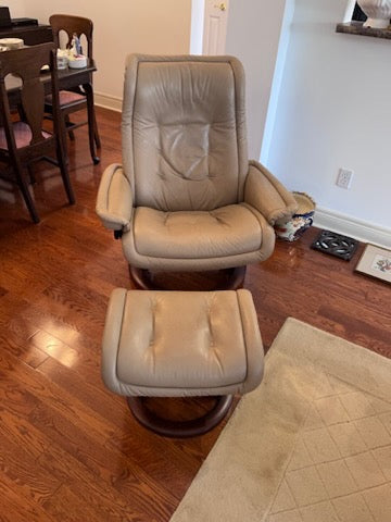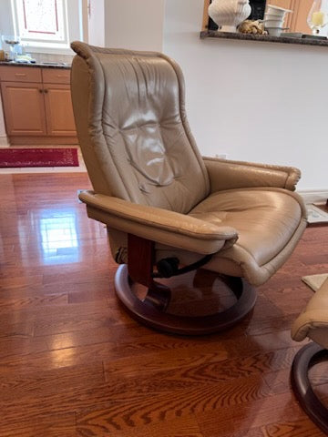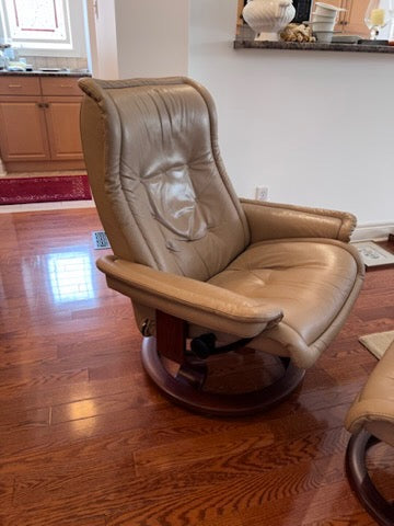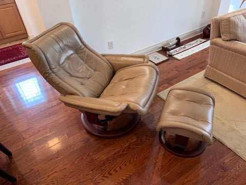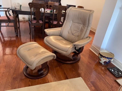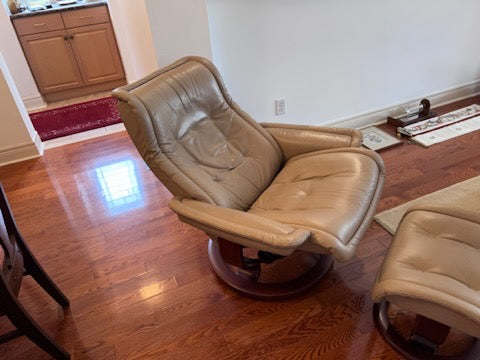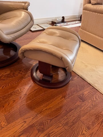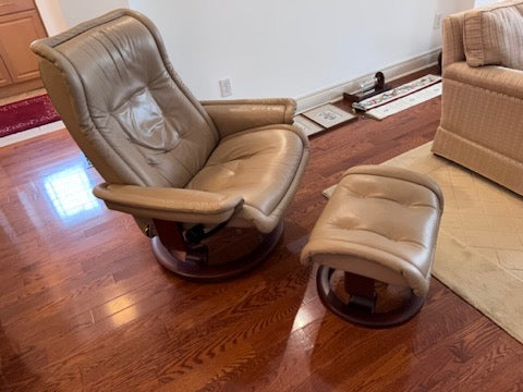 Leather Stressless Ekornes Recliner + Ottoman.