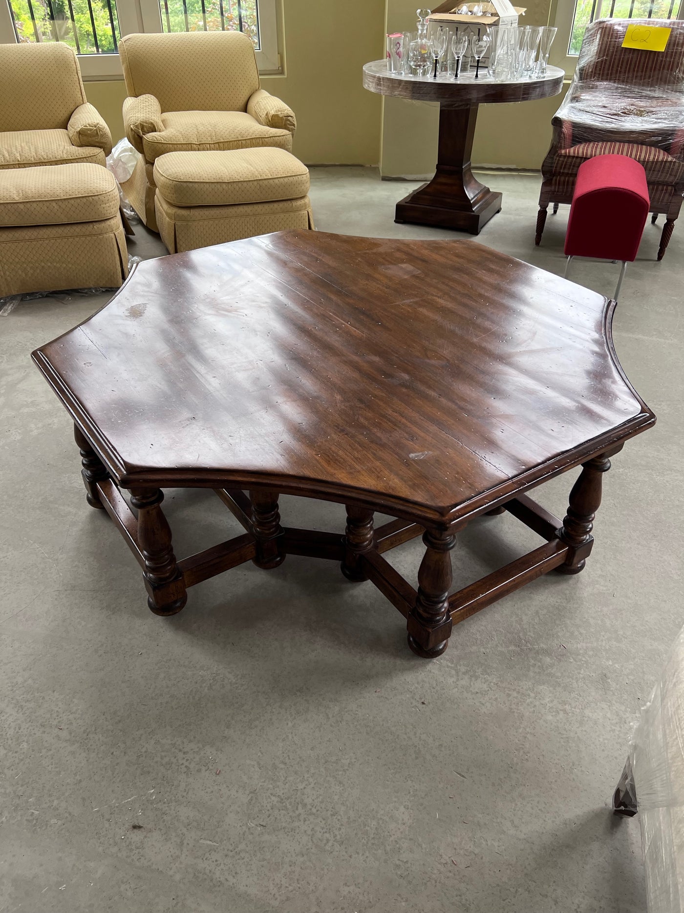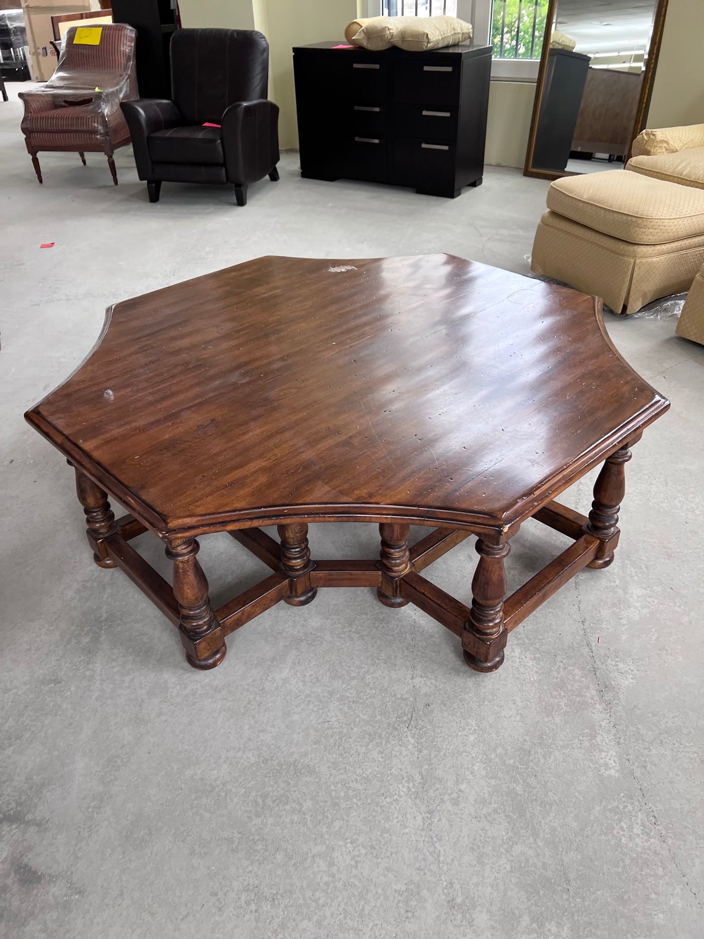 Large Solid Wood Octagonal Coffee Table