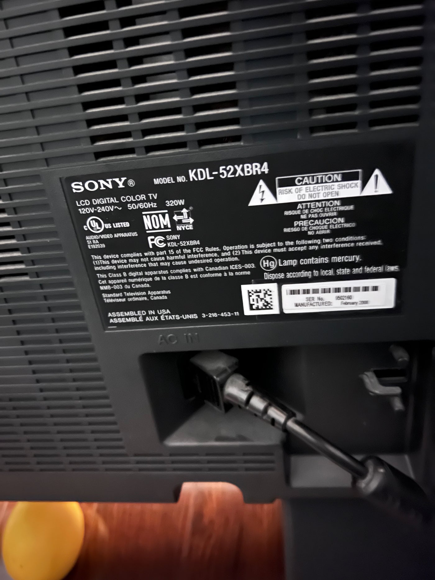 Sony KDL-52XBR4 LCD 52" TV.