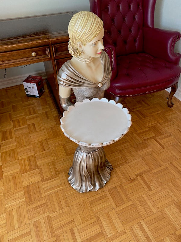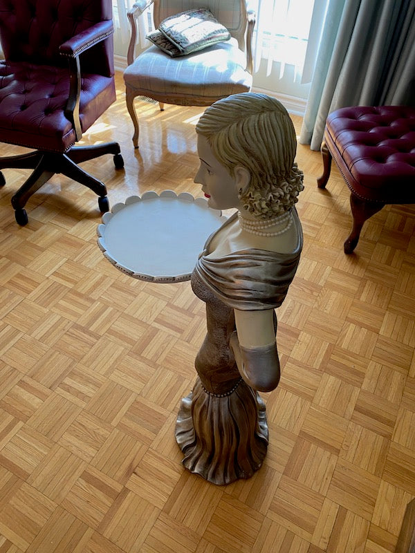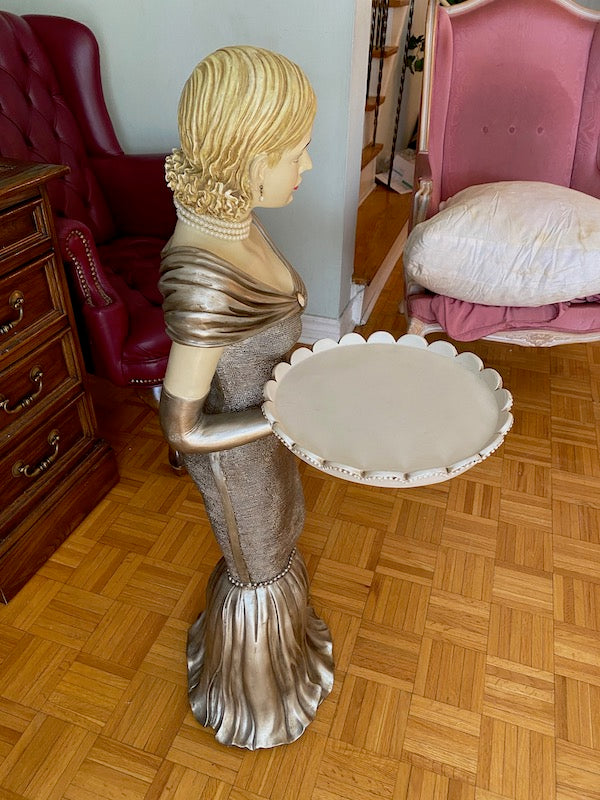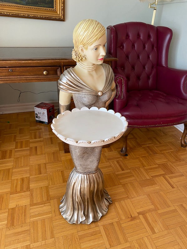 Decor- Lady in Dress Holding Serving Platter. Resin.