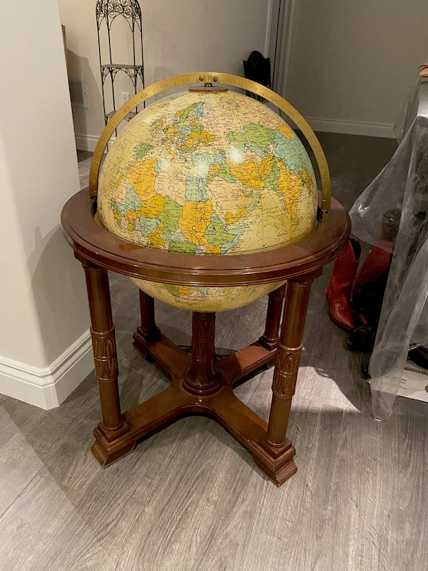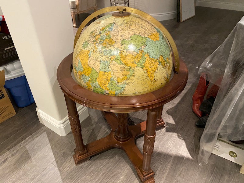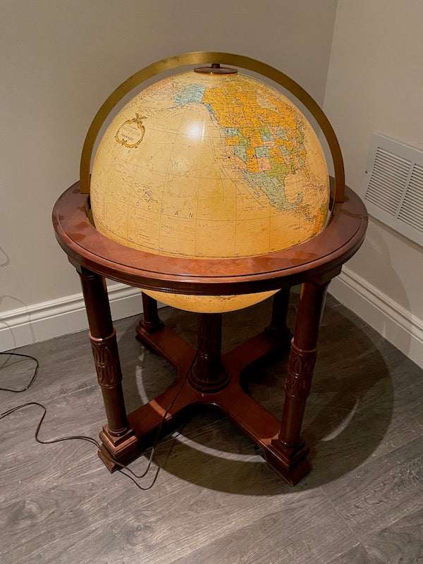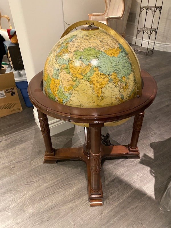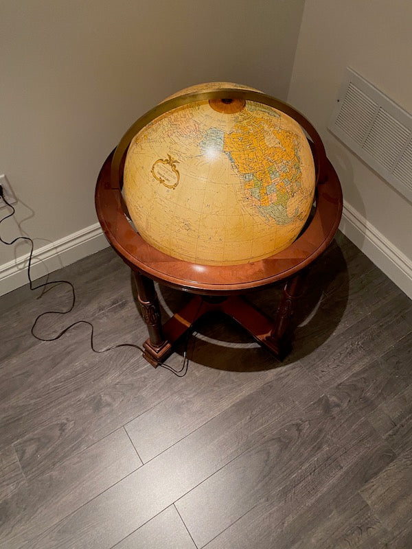 Light Up Globe on Stand. This extremely unique piece needs to be plugged in for the light up feature. In perfect working condition.