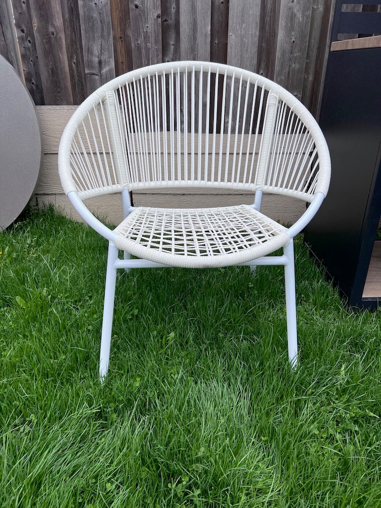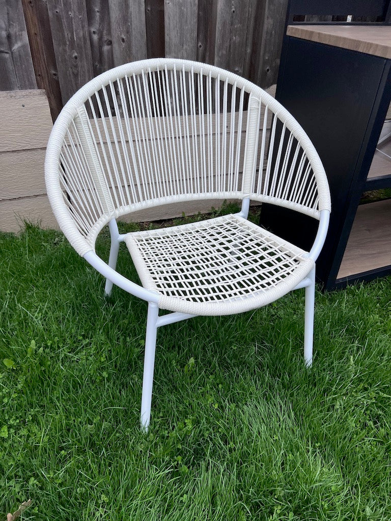 White Steel and Wicker Egg Chair.