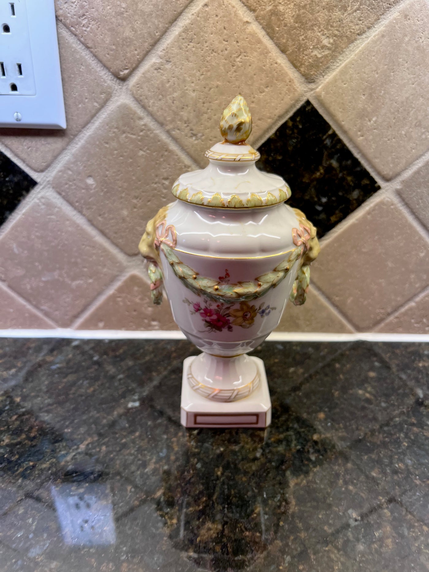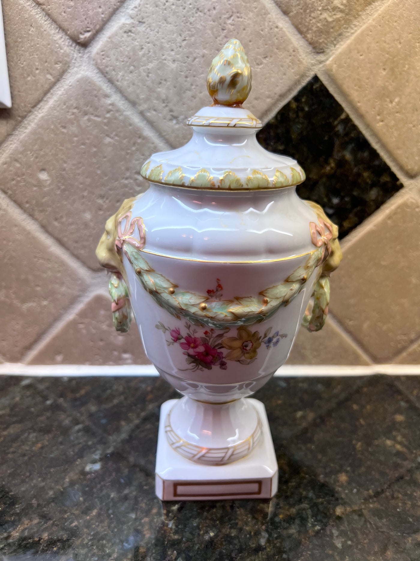 Royal Berlin KPM Porcelain Footed Lion Handle Covered Urn or Vase 8 3/4".