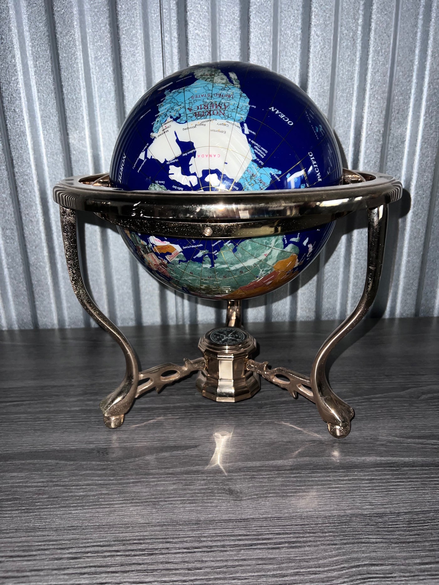 Lapis Blue Table Top Globe with Gold Stand.
