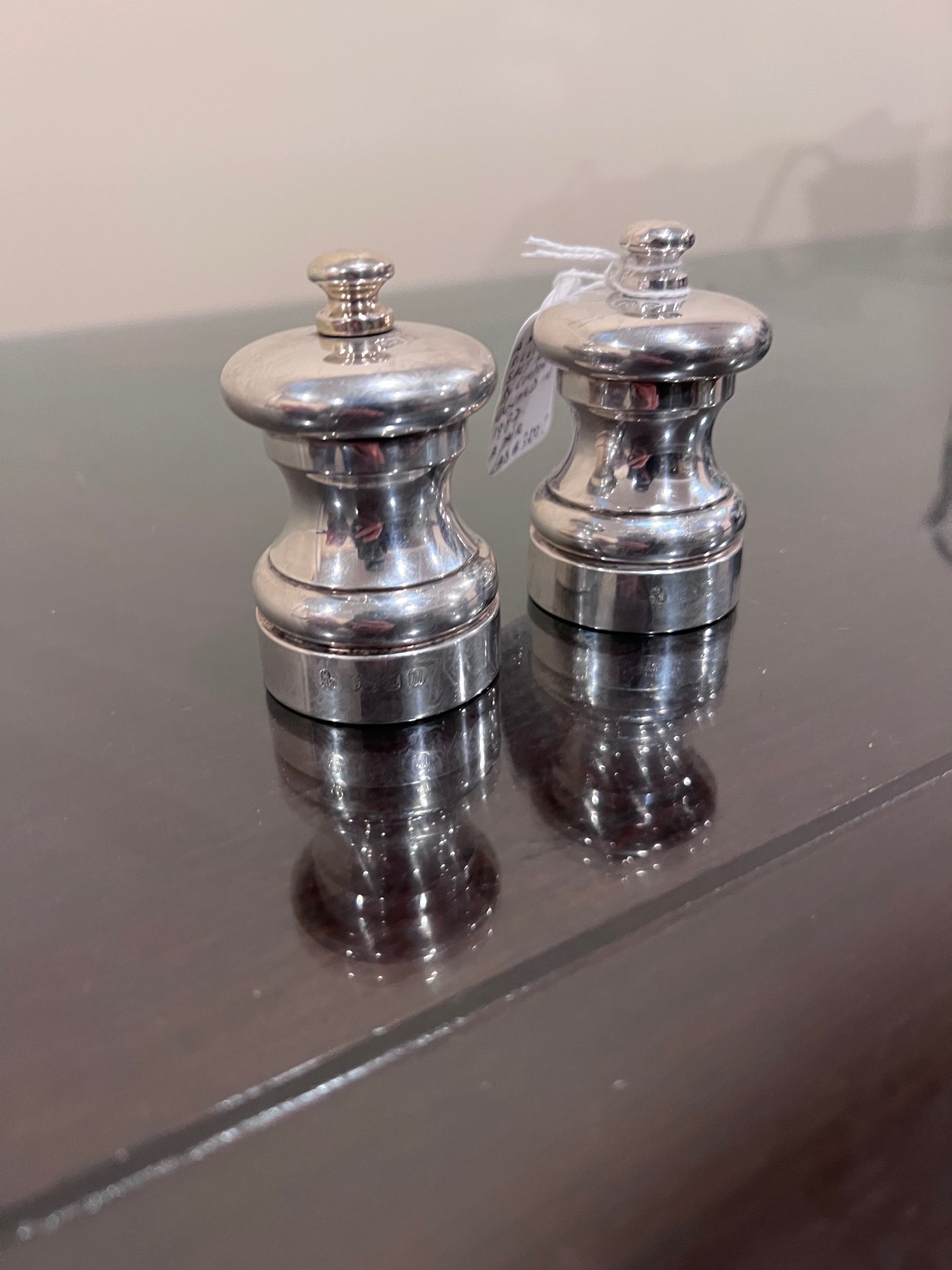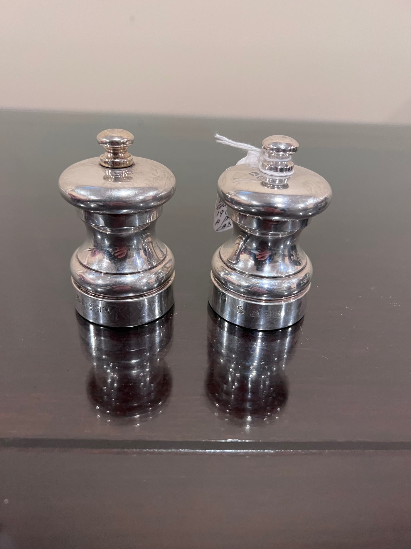 Pair of Sterling Silver Peter Piper Salt & Pepper Grinders.