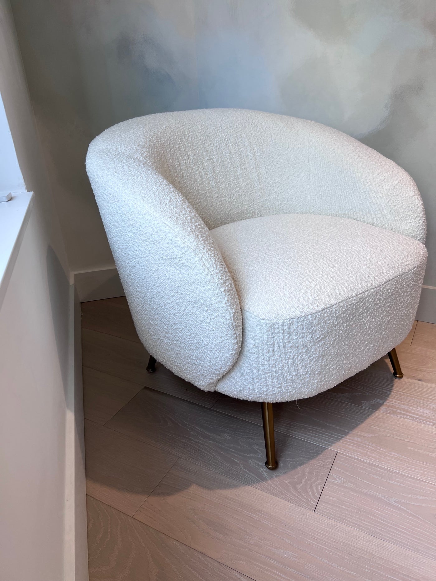 Sunpan White Bouclé Clea Lounge Chair (*Retail value $999).
