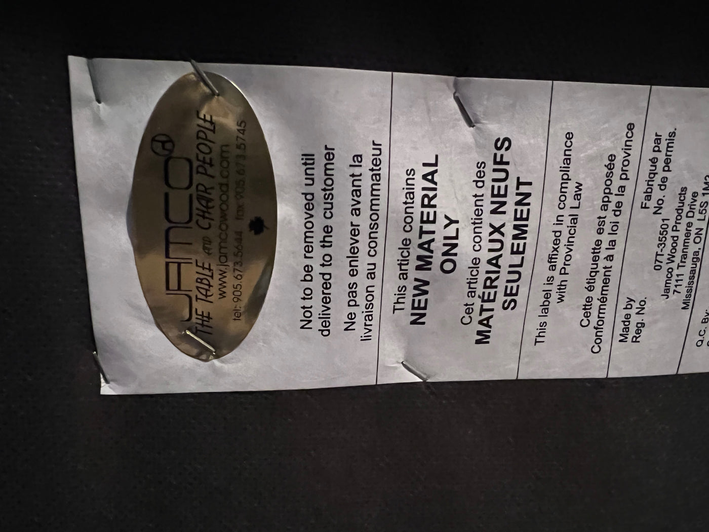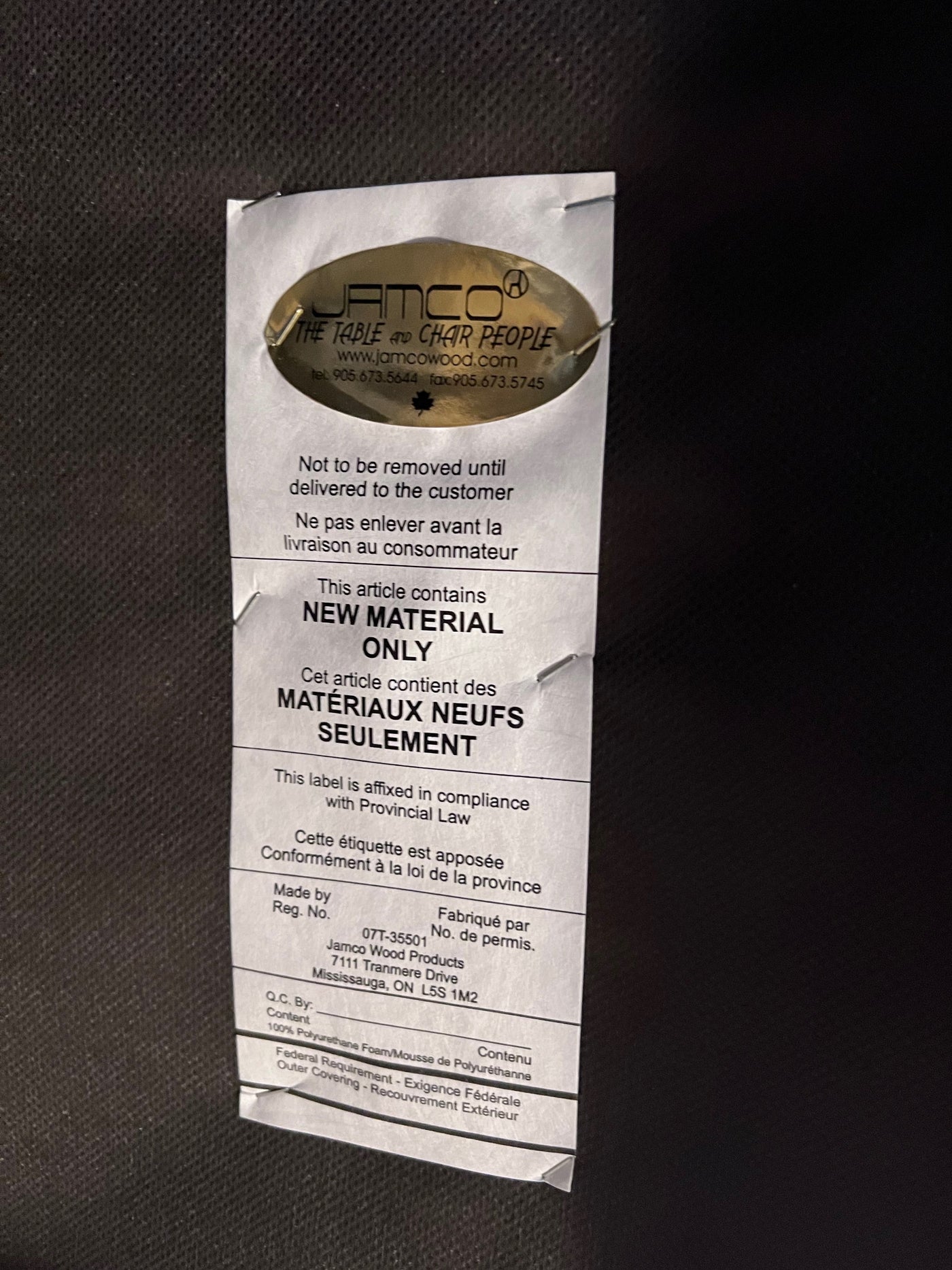 'Jamco Wood Products' Gold Upholstered Bench.