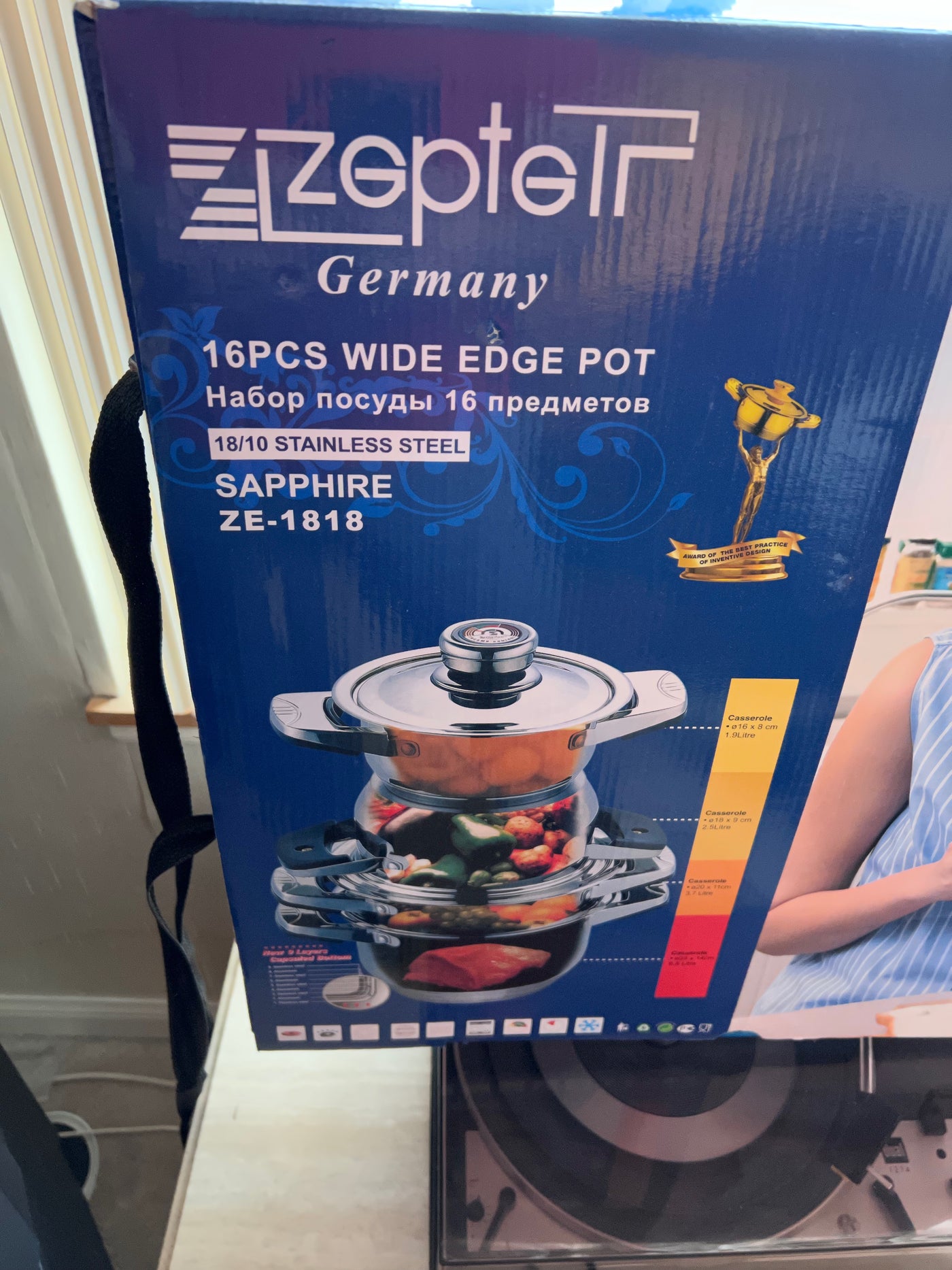 ZEPTER 16 PIECES WIDE EDGE POT, SAPPHIRE ZE-1818, STAINLESS STEEL COOKWARE (*2 Available).