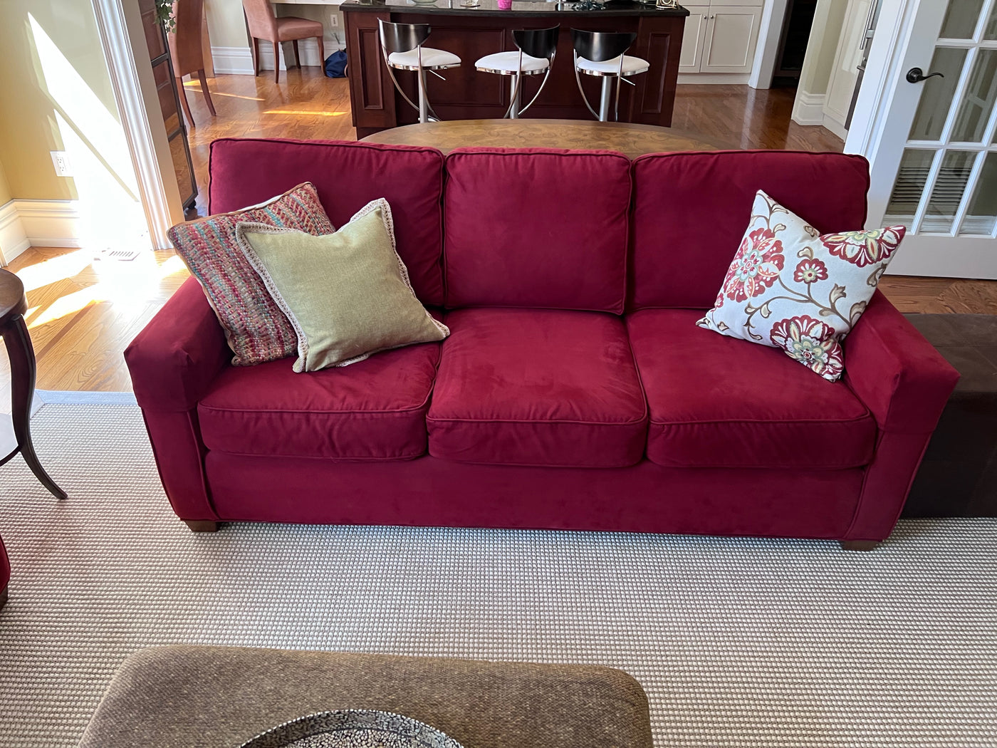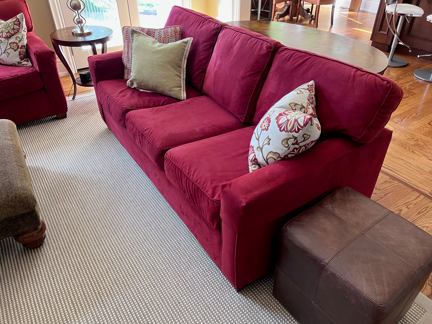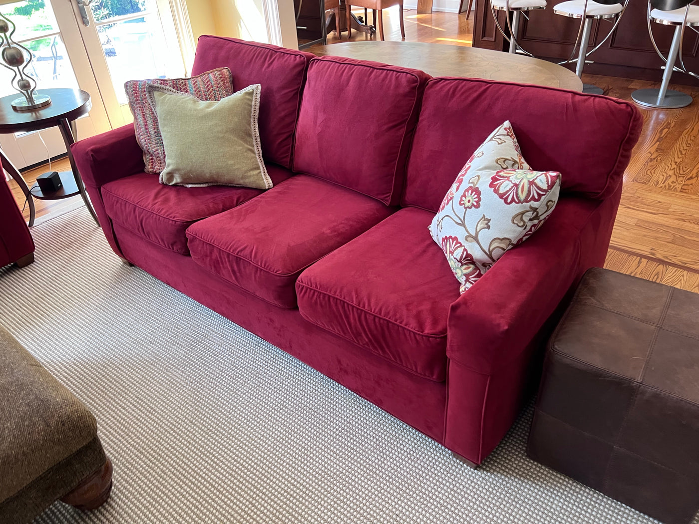 Red Sofa from Concordian Chesterfield with Robert Allen Fabric # 1.