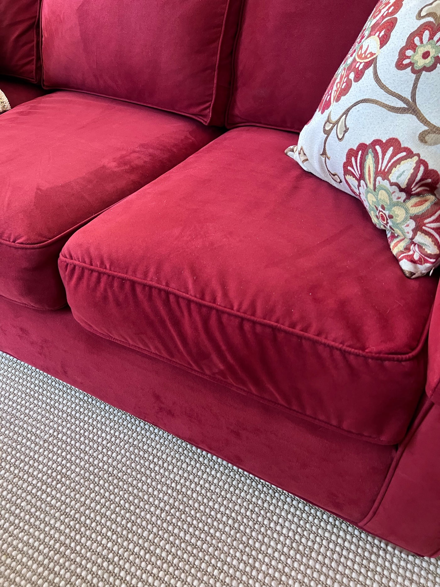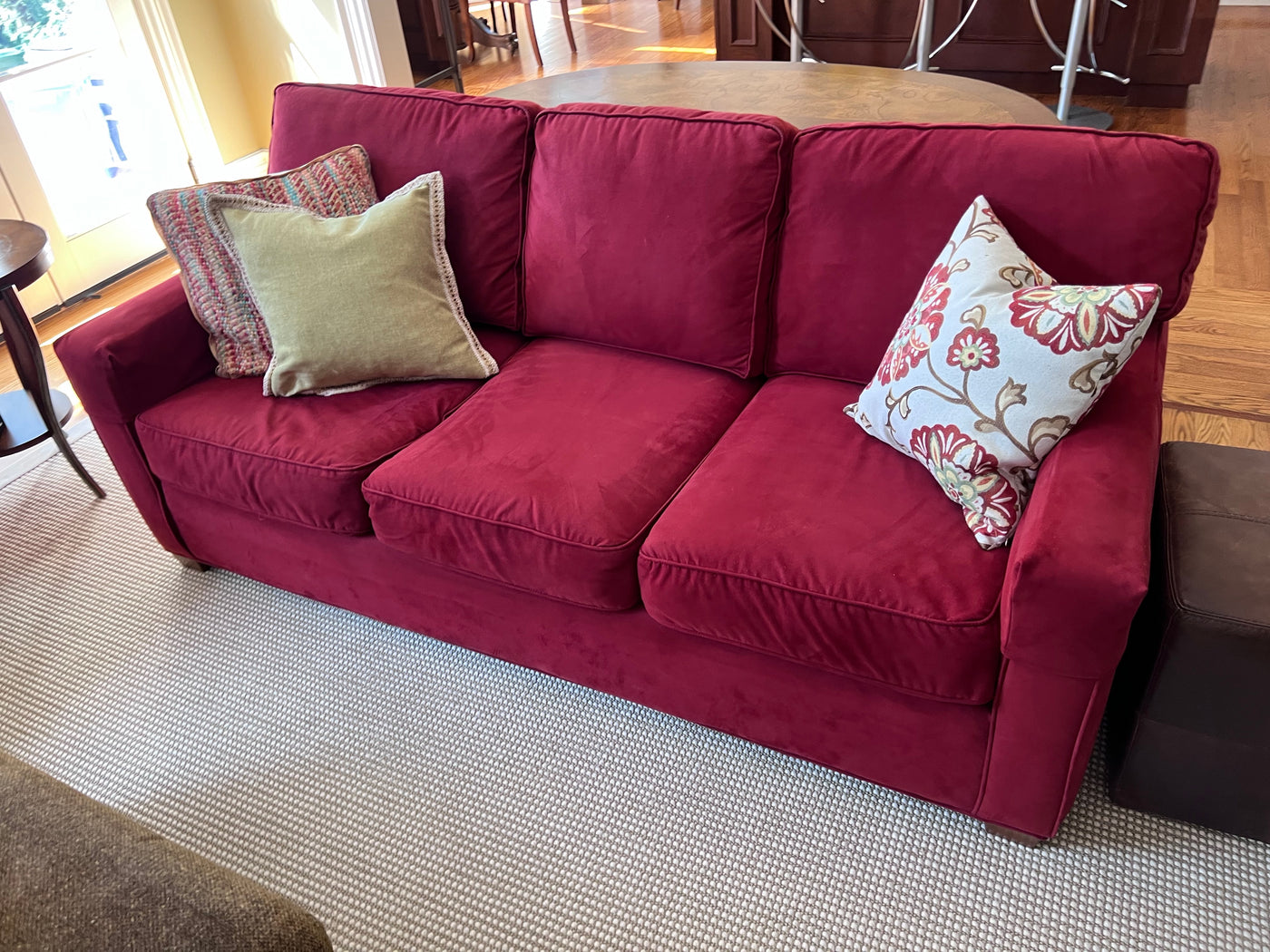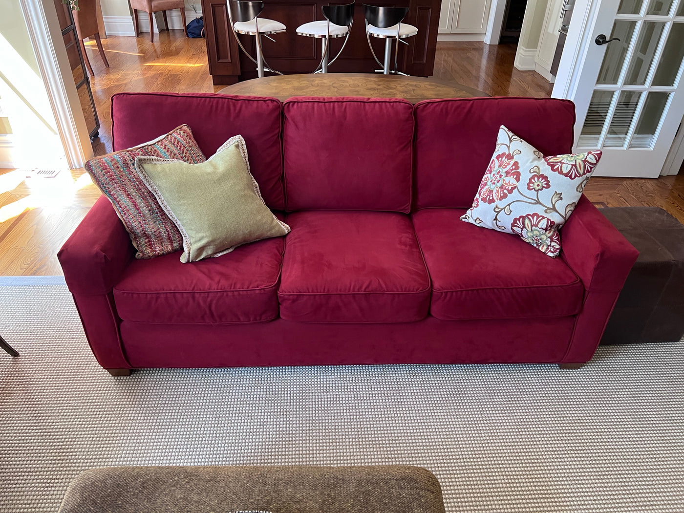 Red Sofa from Concordian Chesterfield with Robert Allen Fabric # 1.