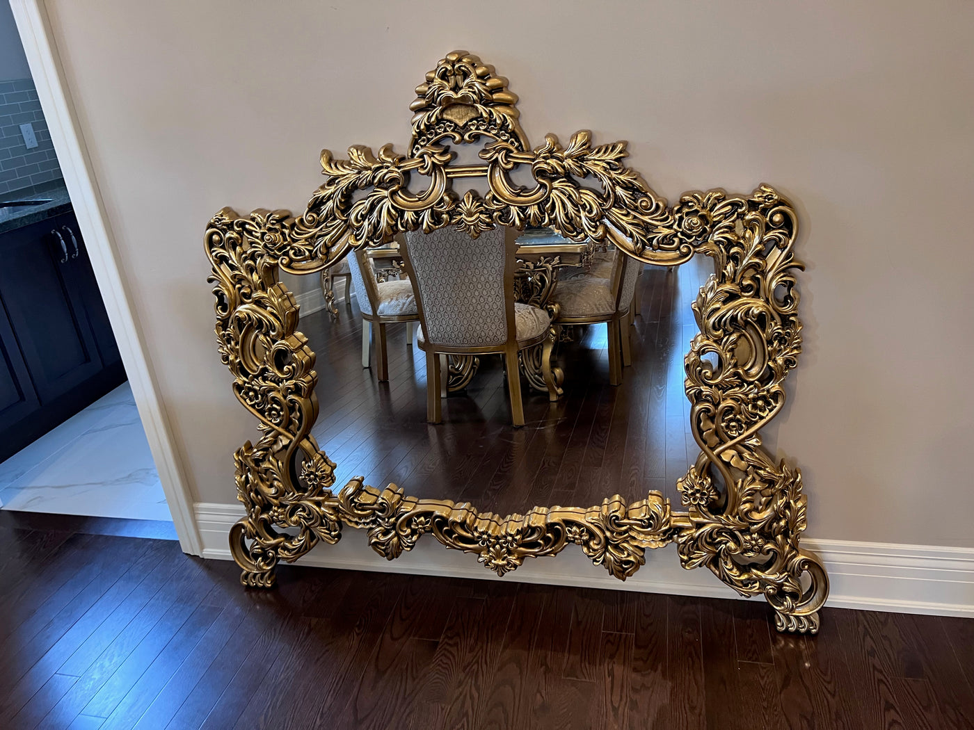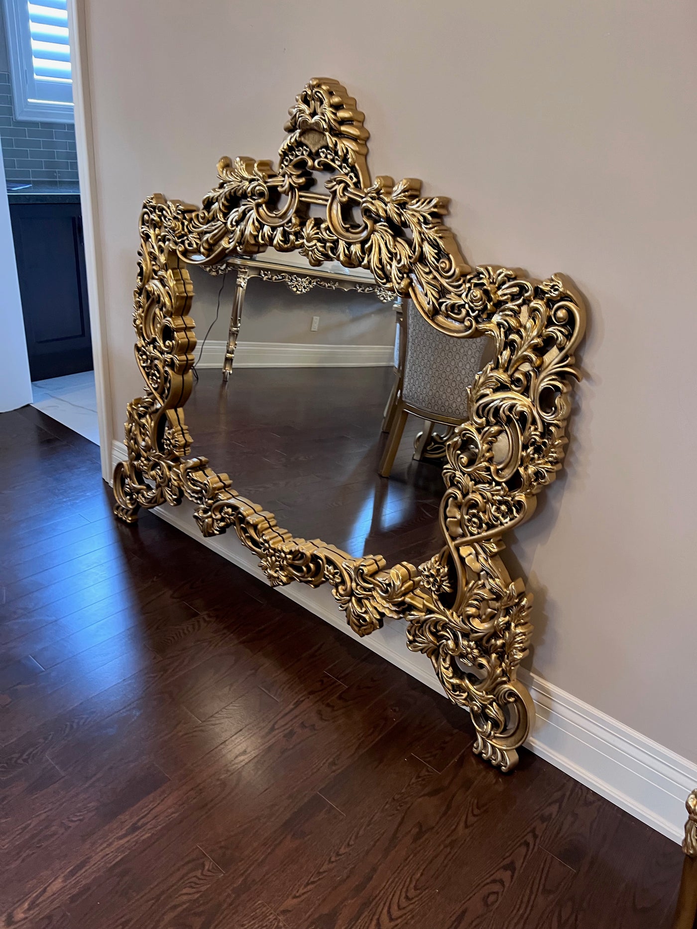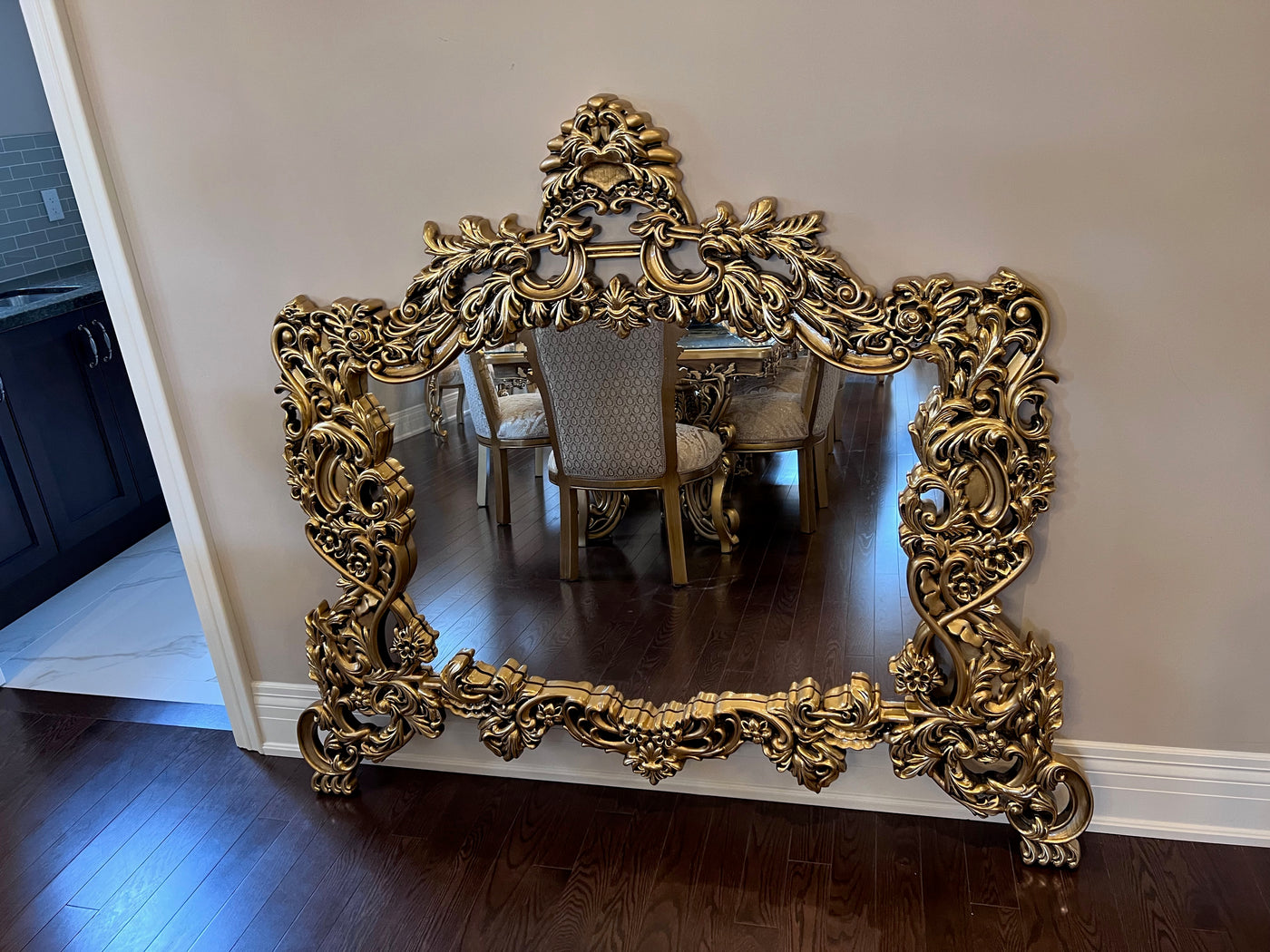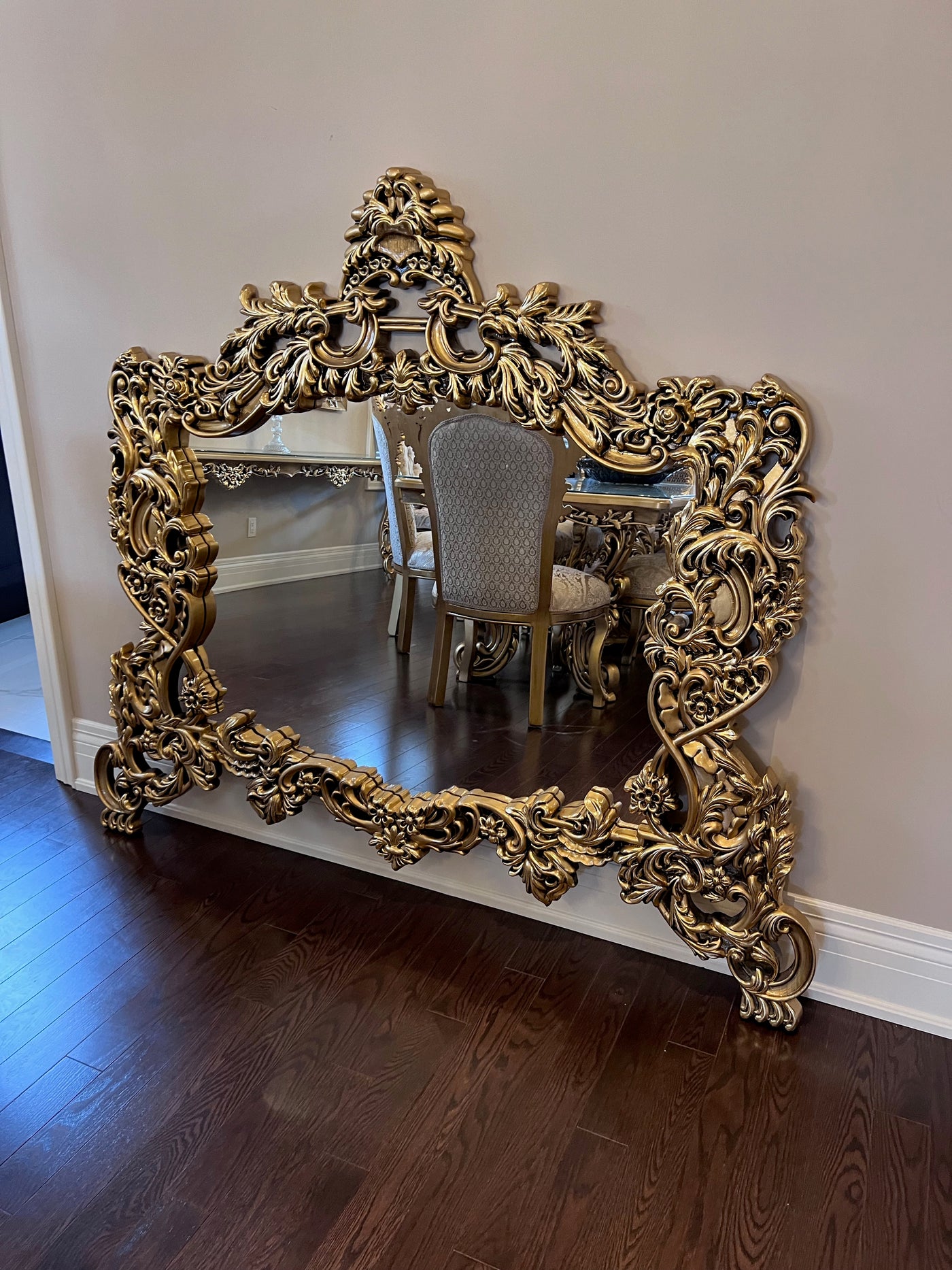 'Paradise Home Decor Furniture' Gold Wood Carved Wall Mounted Mirror.
