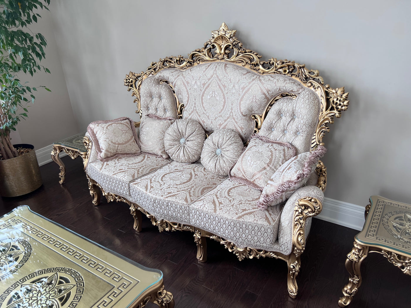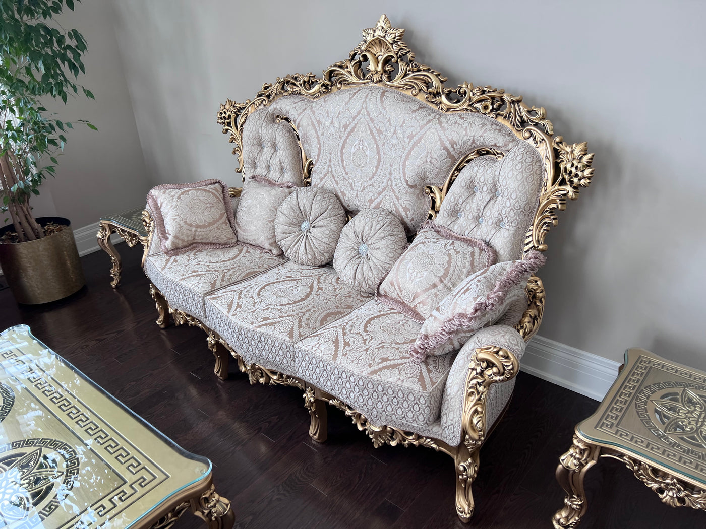 'Paradise Home Decor Furniture' Gold Wood Carved Sofa.
