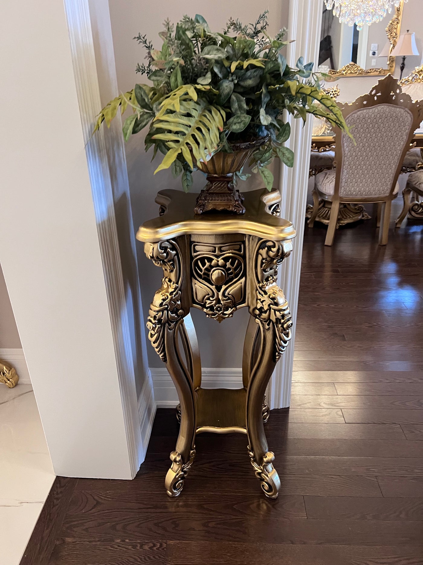 'Paradise Home Decor Furniture' Gold Wood Carved Pedestal Stand.