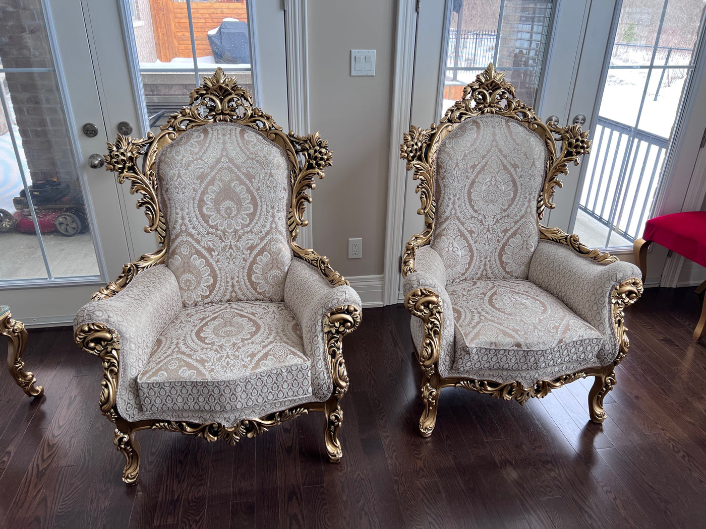 2 'Paradise Home Decor Furniture' Gold Wood Carved Large Armchairs