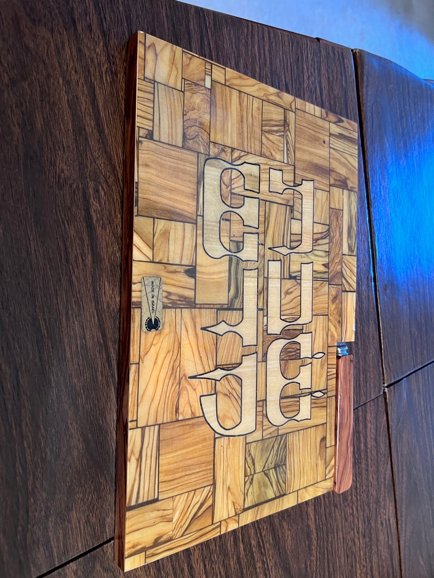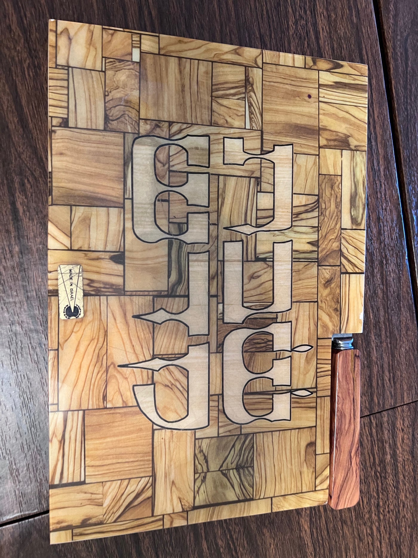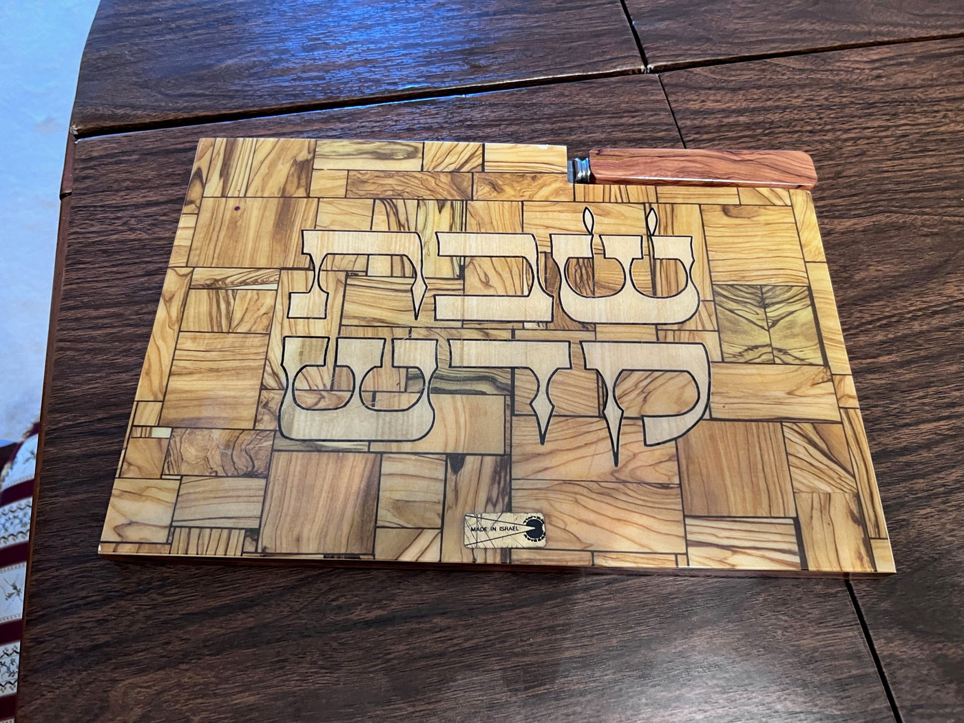 Shabbat Shalom Challah Cutting Board w/Knife- Made in Israel.