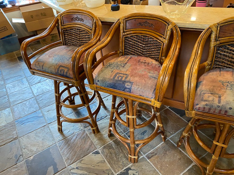 3 Vintage Bamboo Style Rattan Bar Stools.