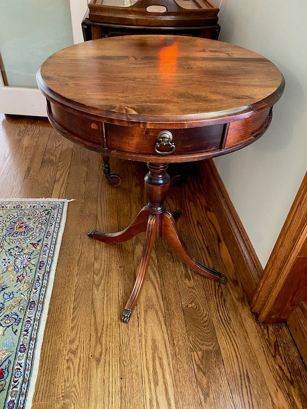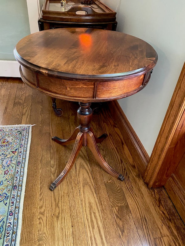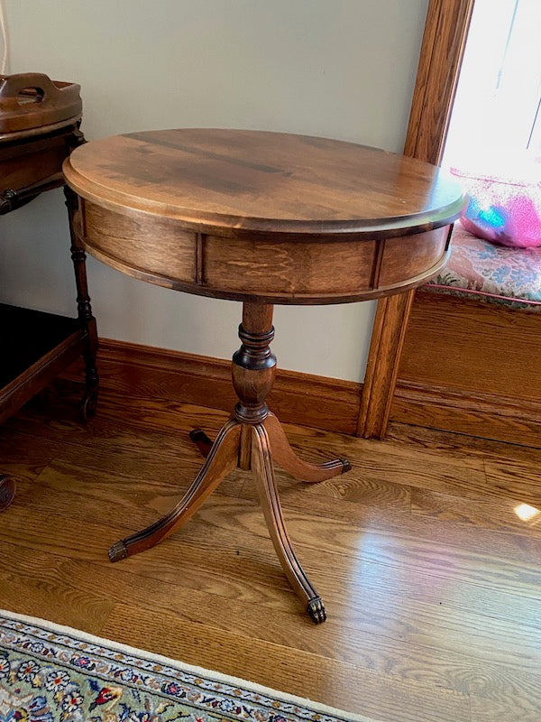 Antique Round Wood Table, Duncan Phyfe Feet.