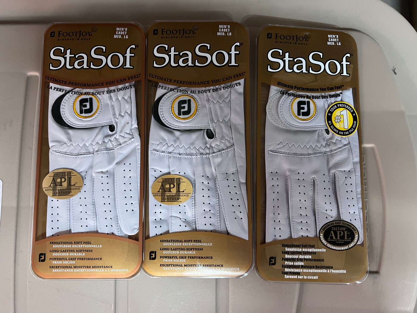 3 Footjoy Men's StaSof Golf Gloves - MED-LG, Left Hand.