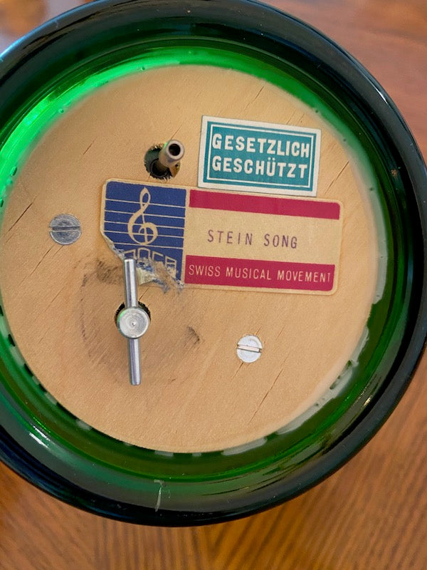 Vintage Wine Glass- Gesetzlich Geschützt- Stein Song Swiss Musical Movement.