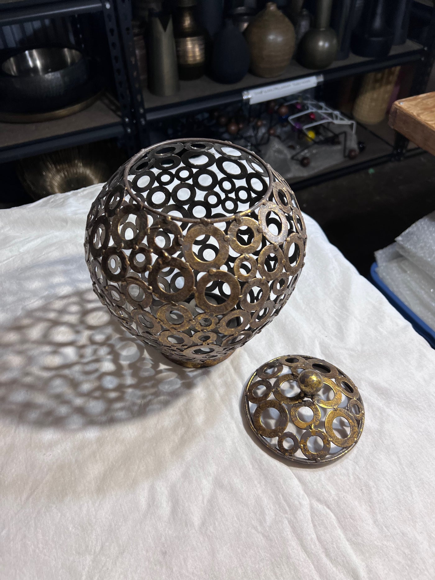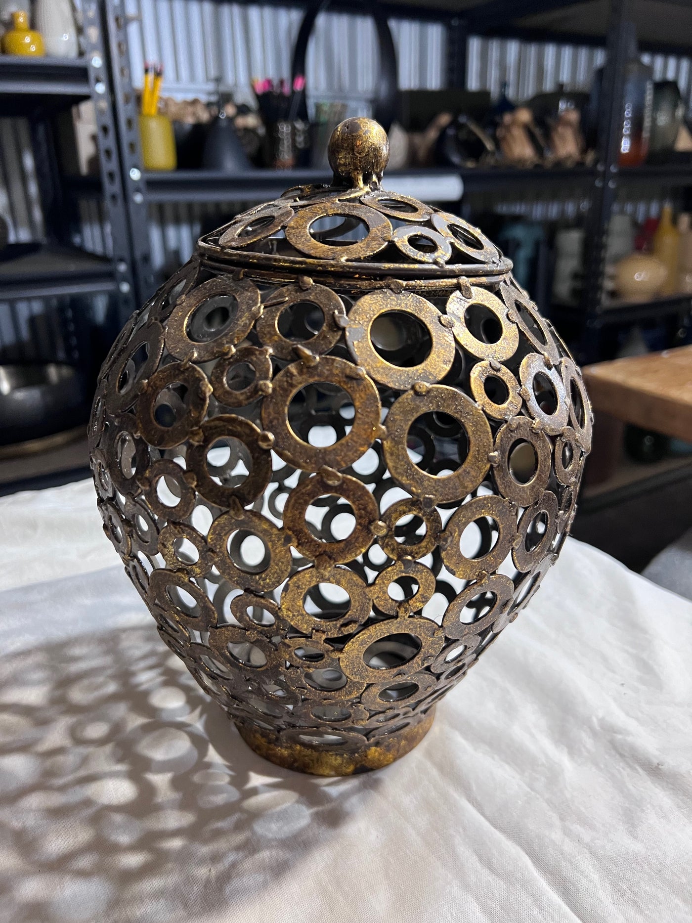 Gold Circles Lidded Vase.