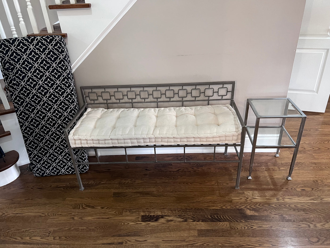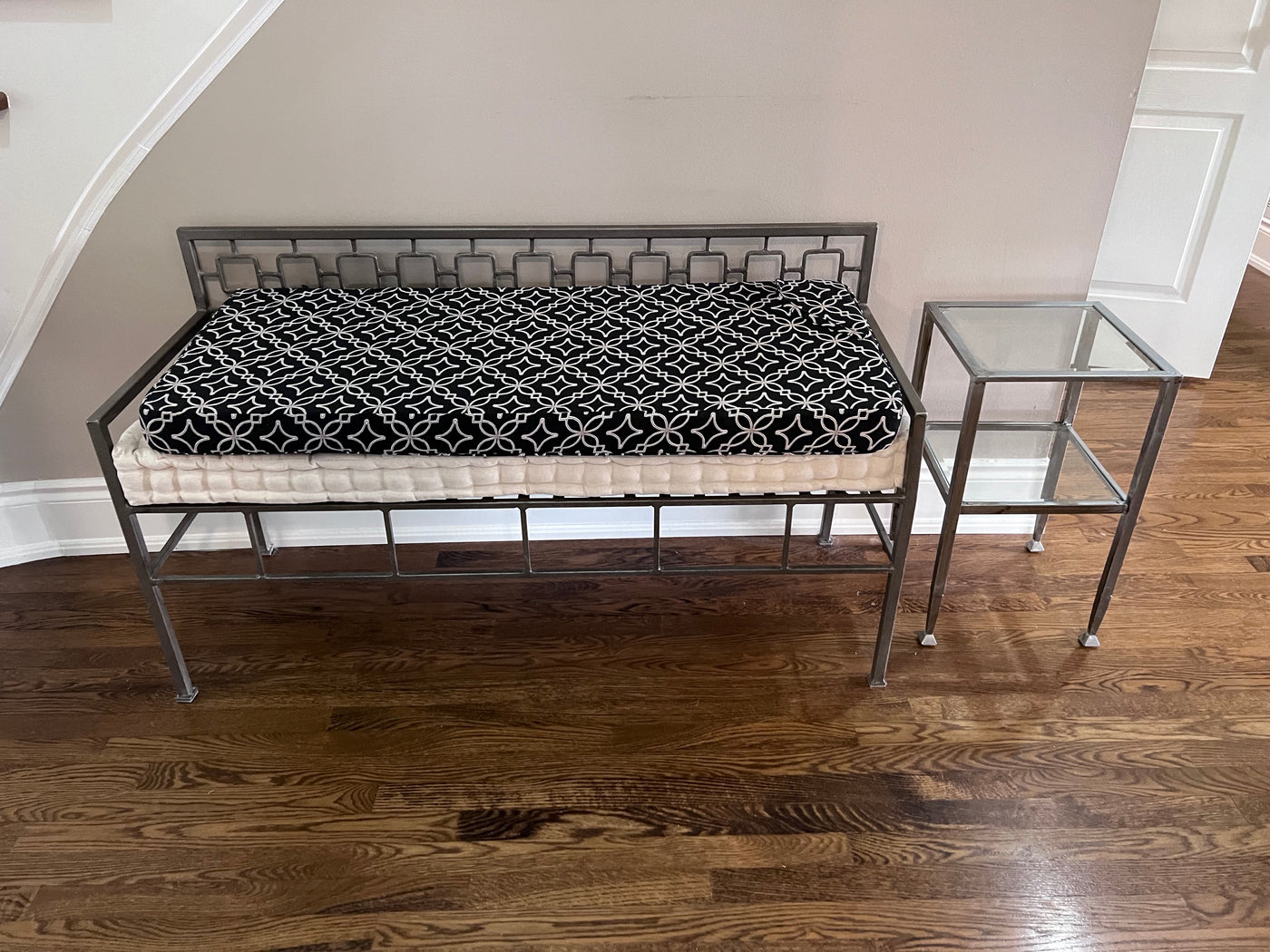Metal Bench (2 Cushion options) + Matching Glass Side Table.