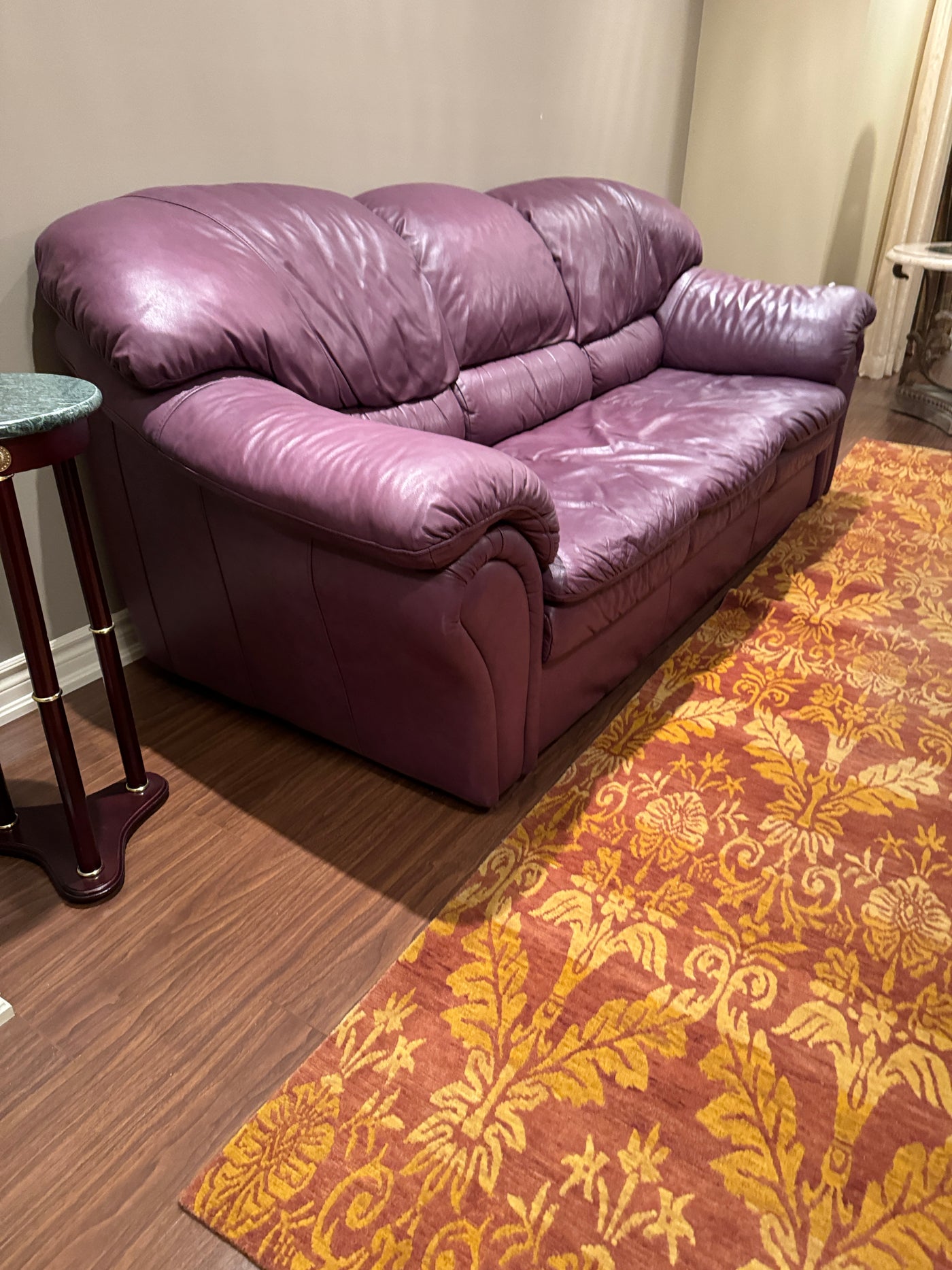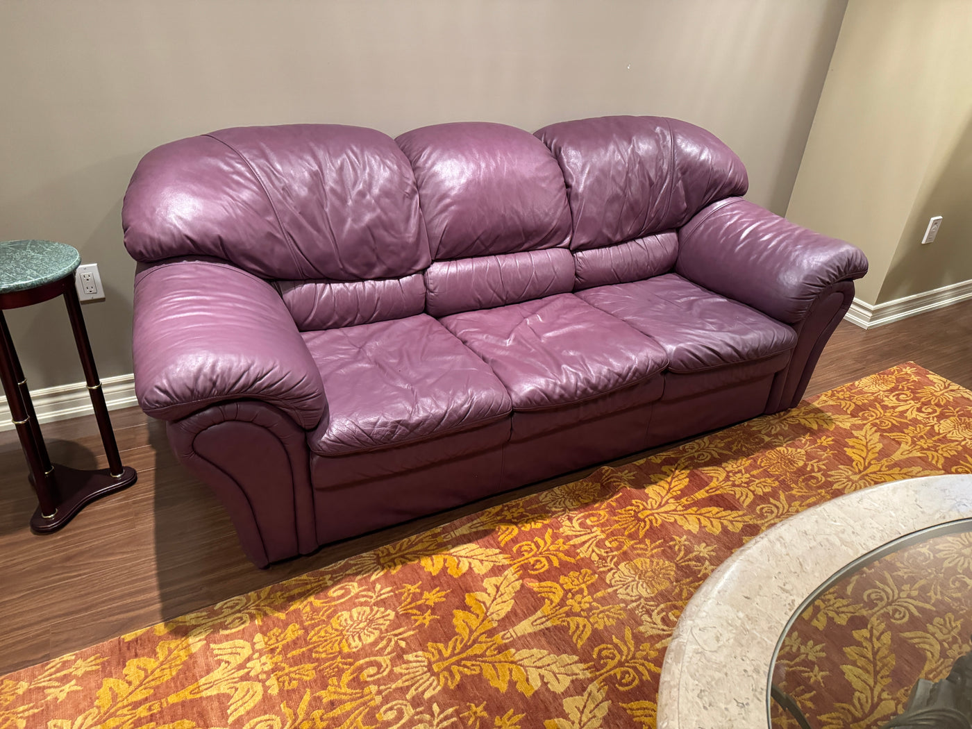 Purple-Brown Faux Leather 3-Seat Sofa.