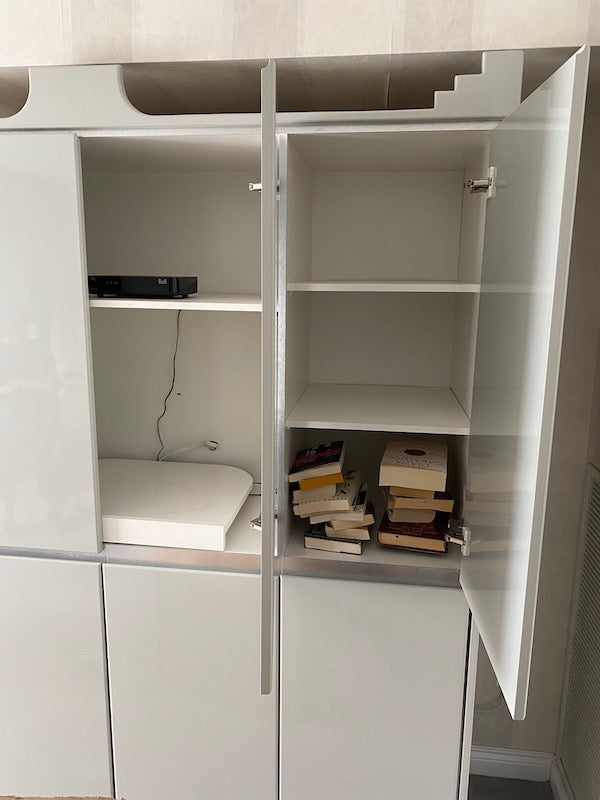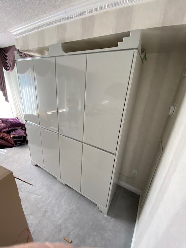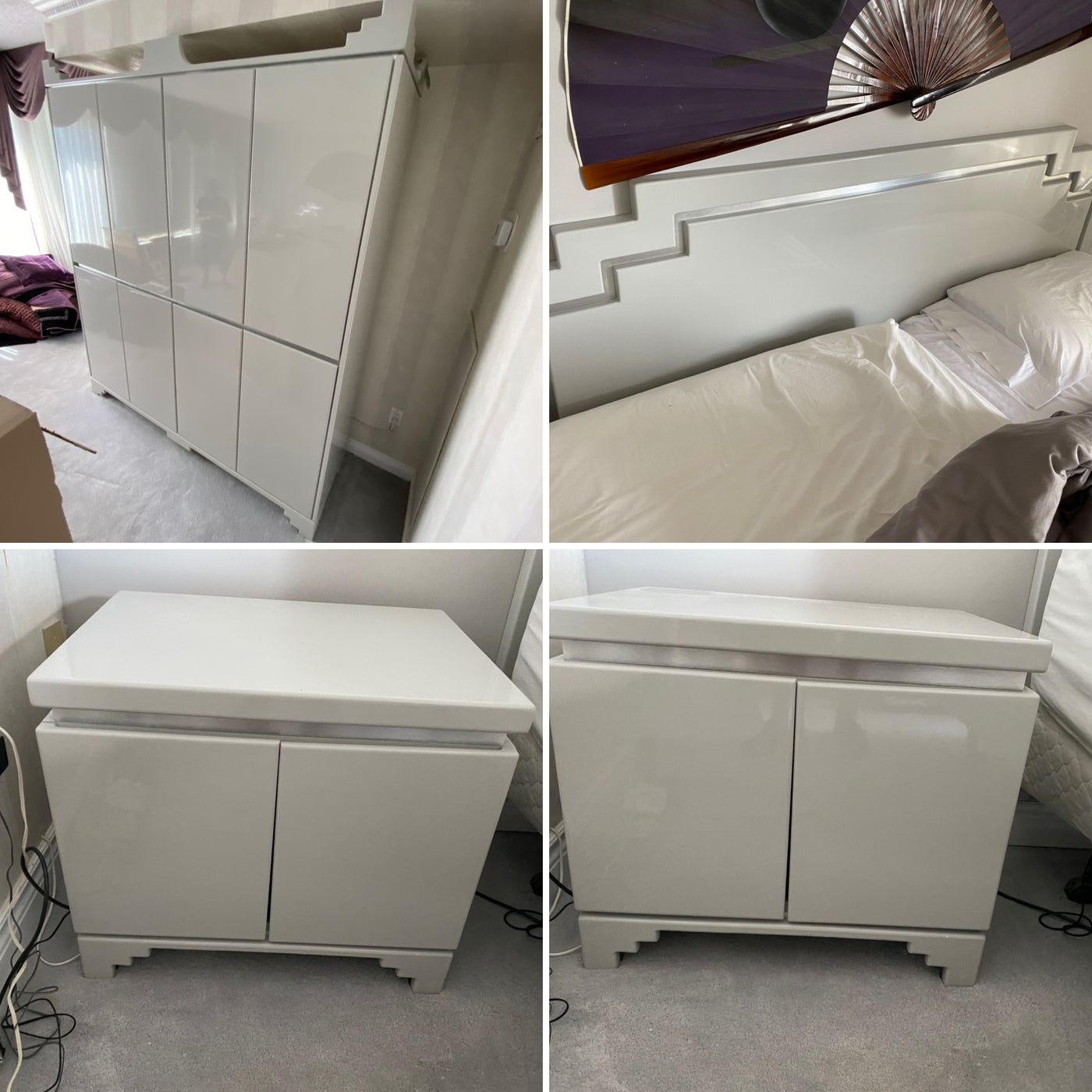 Includes:King Headboard2 Side TablesArmoire/Wall Unit
