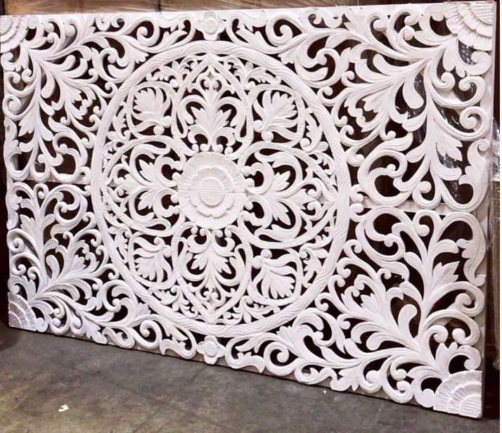 Rectangle White Panel Handcrafted Teak Muraya, King- retail $1,299.