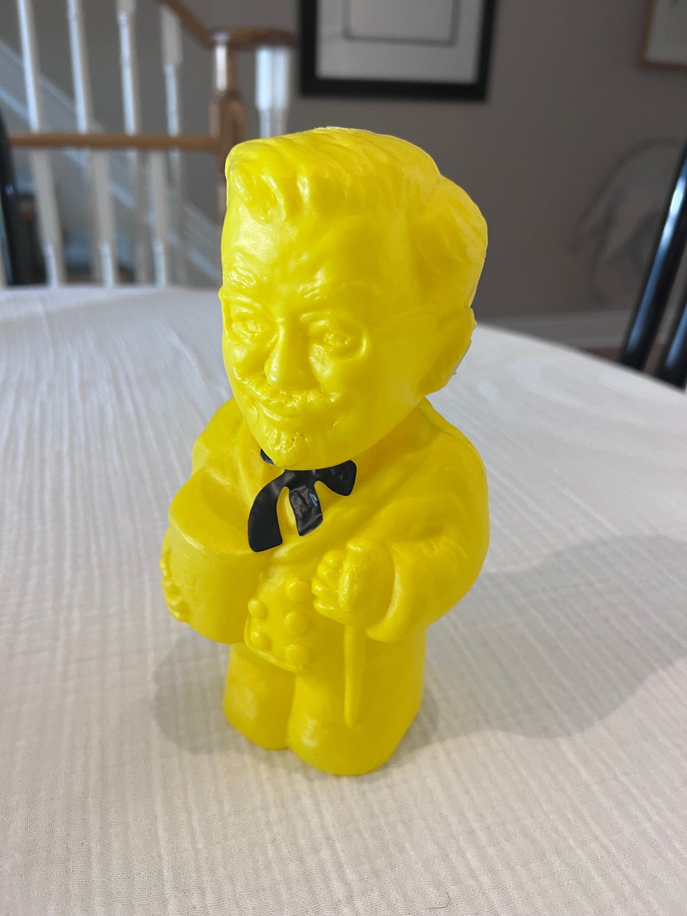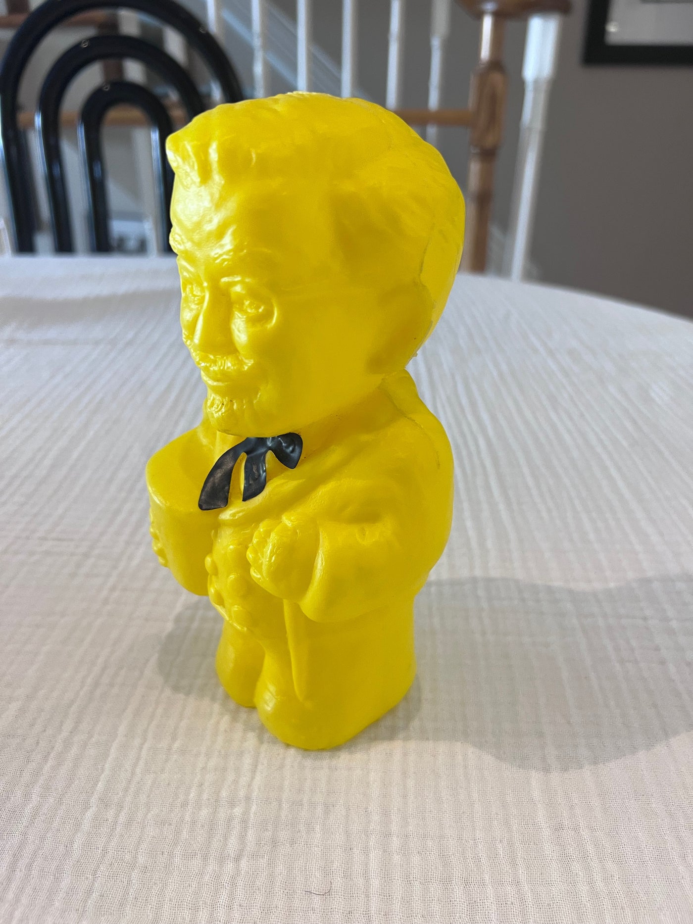 Vintage COL SANDERS KFC YELLOW PLASTIC PIGGY BANK, MARGARDT CORP 1972.
