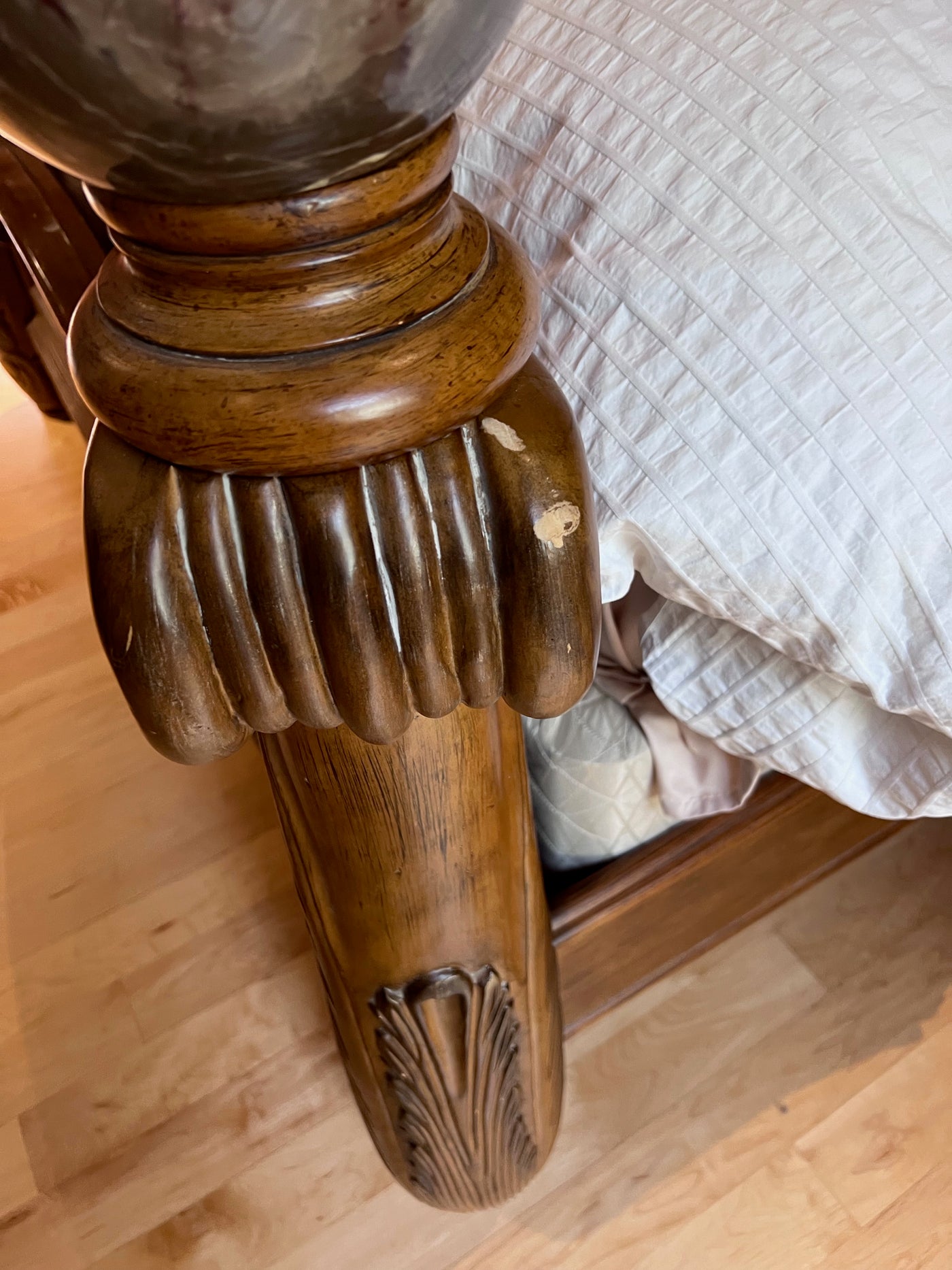 Some wear on the feet of the bed as shown in the pictures-- no major damage.