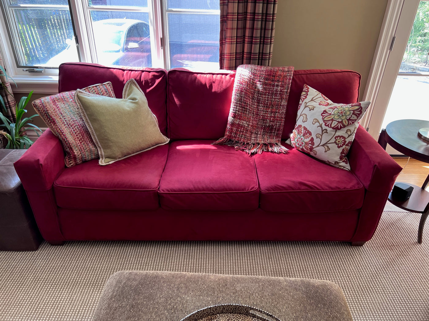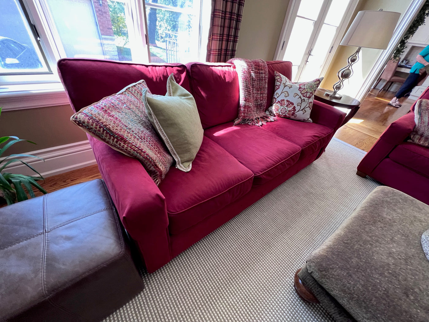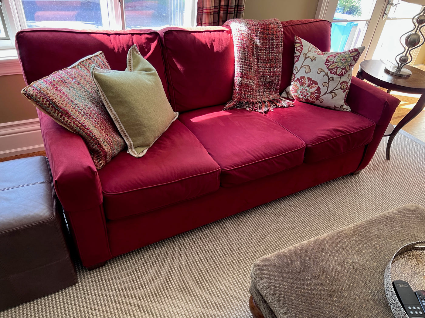 Red Sofa from Concordian Chesterfield with Robert Allen Fabric # 2.