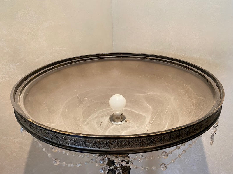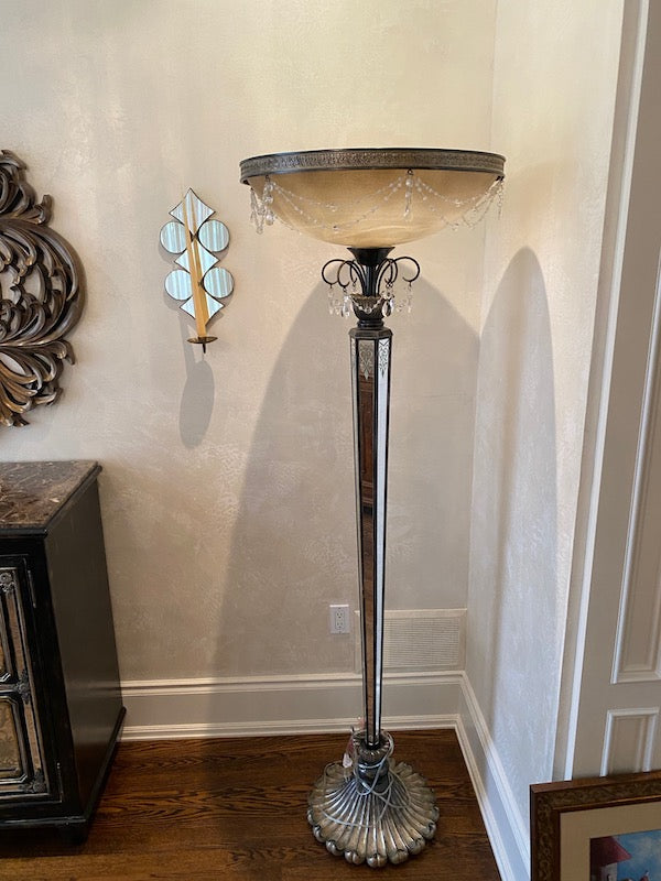 Condition: there is a crack on one of the side of the mirrored "stem" of the lamp. Please view pictures for full disclosure. SOLD AS IS.