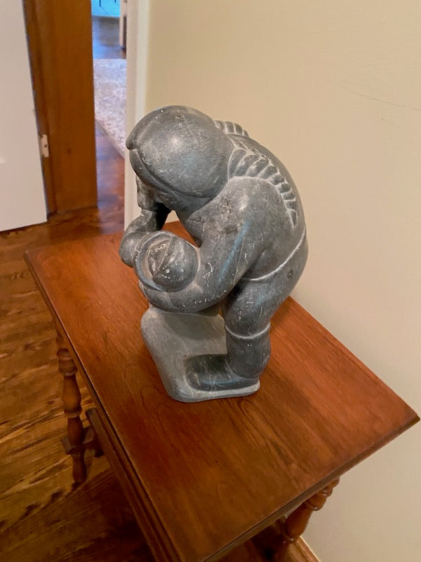 Soapstone Sculpture- 'Mother Holding Baby'.