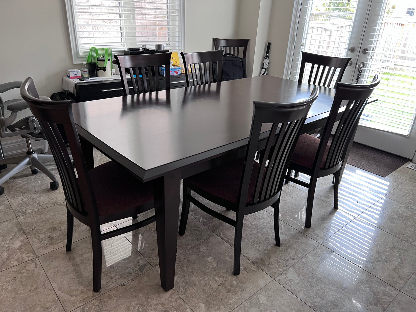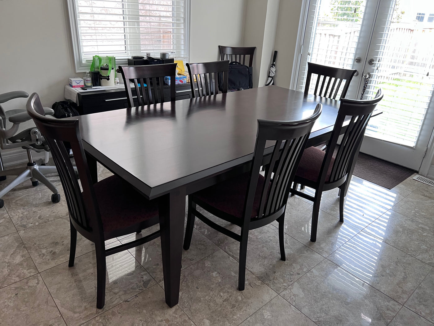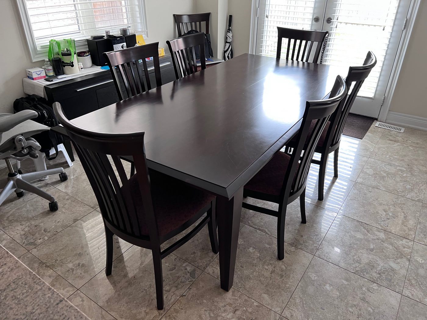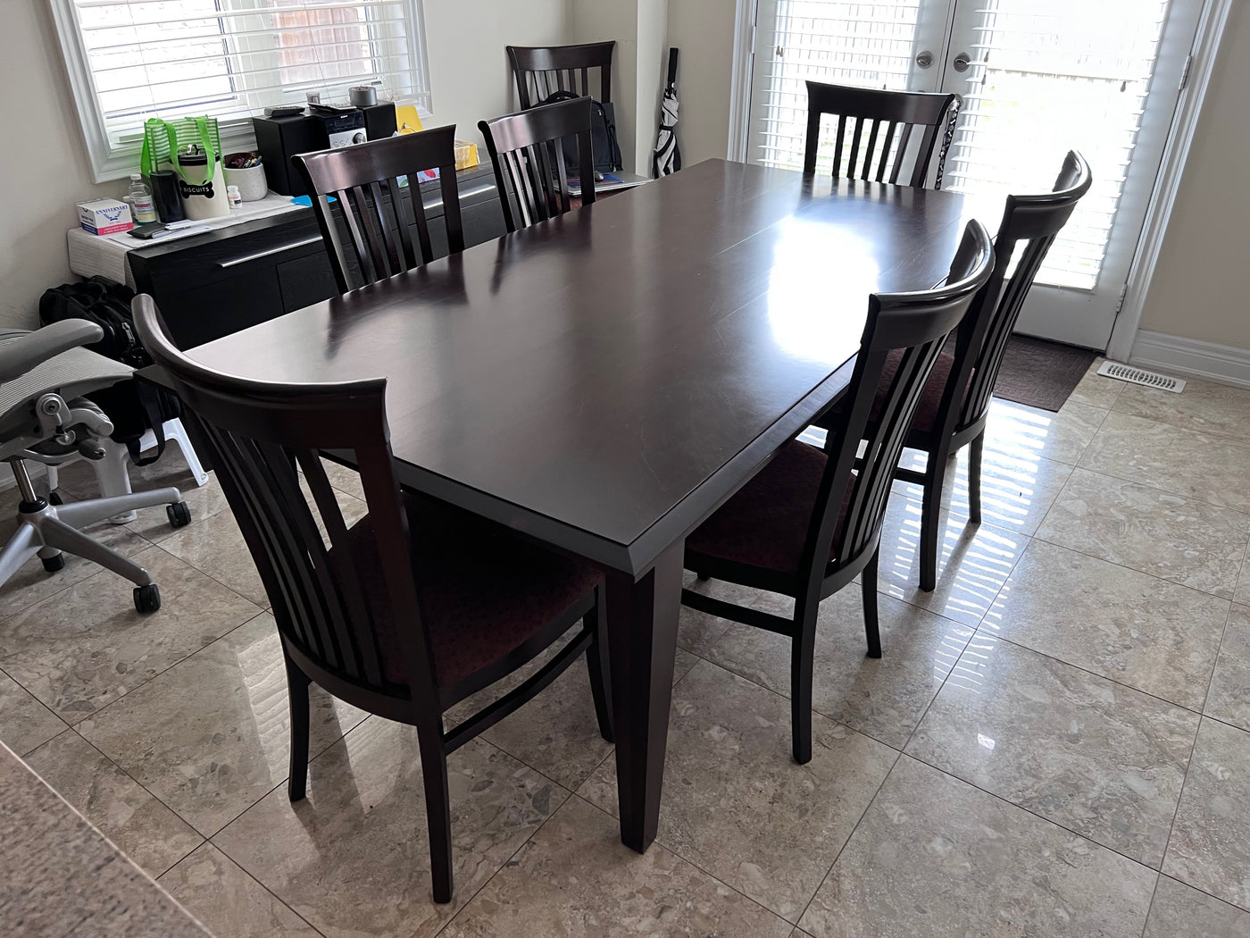 Maple Kitchen Table + 8 Chairs by 'Munro's Furnishings'.