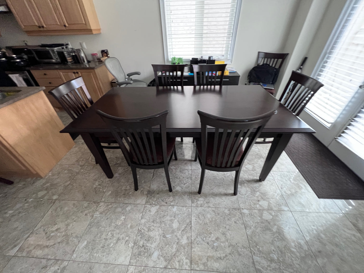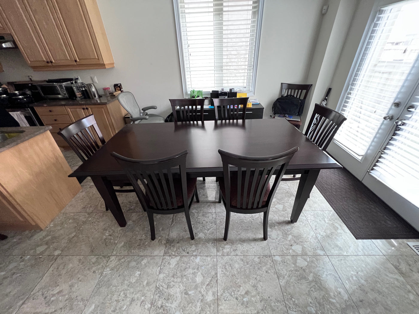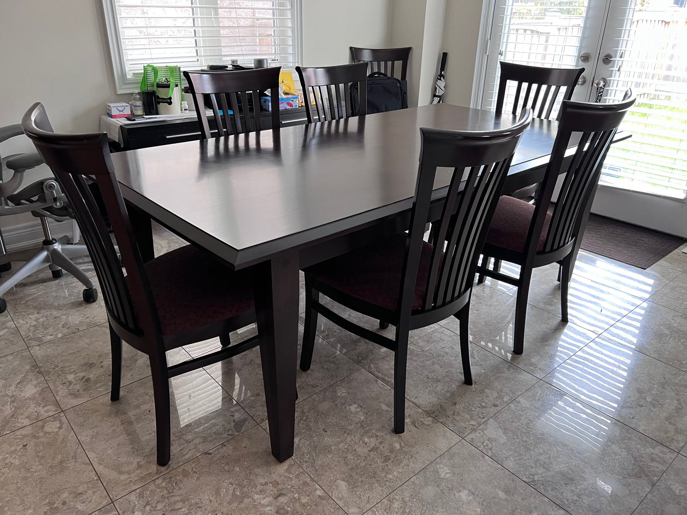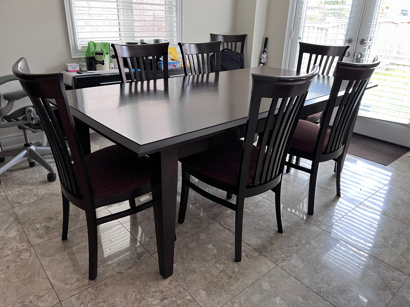 Maple Kitchen Table + 8 Chairs by 'Munro's Furnishings'.