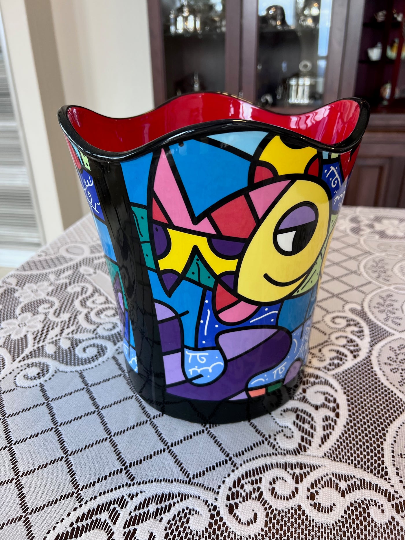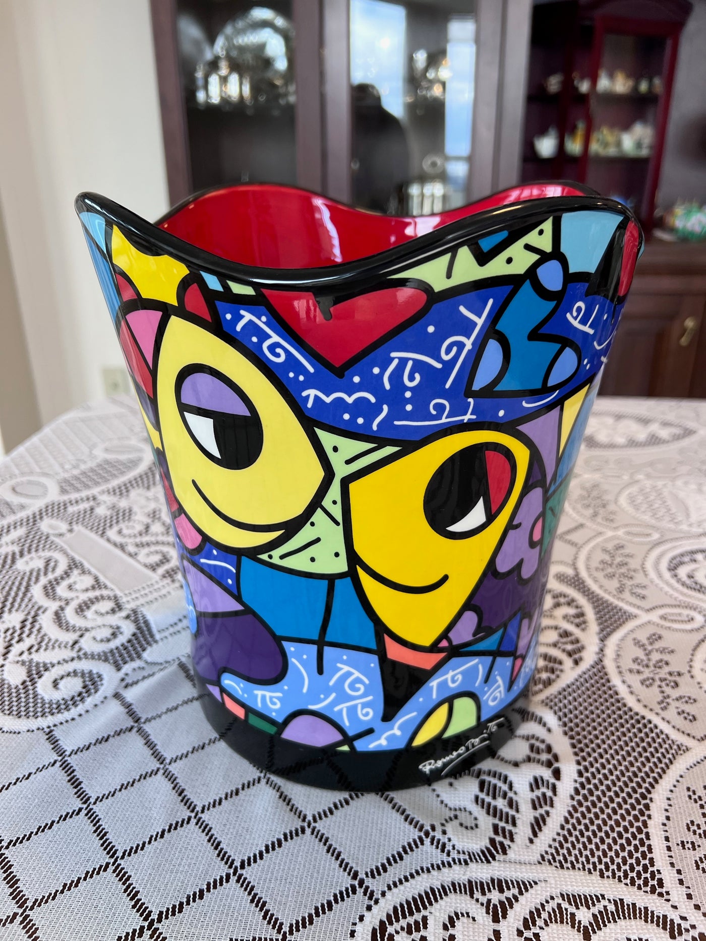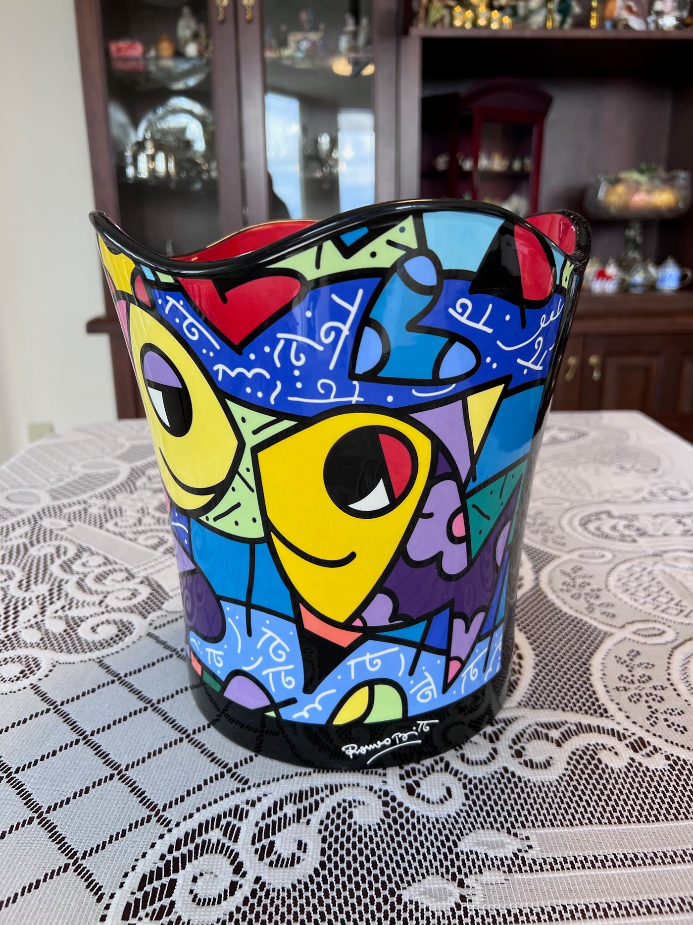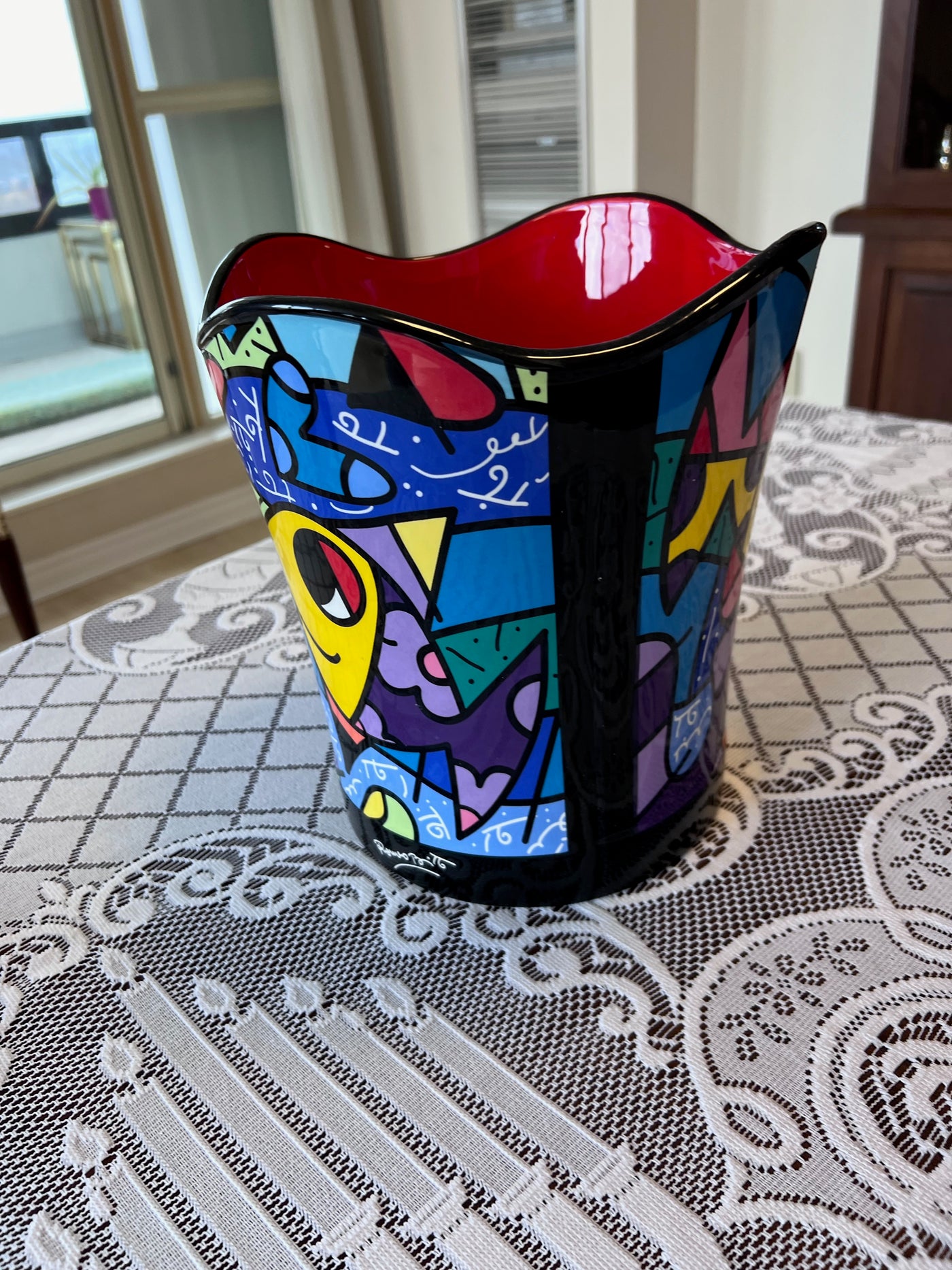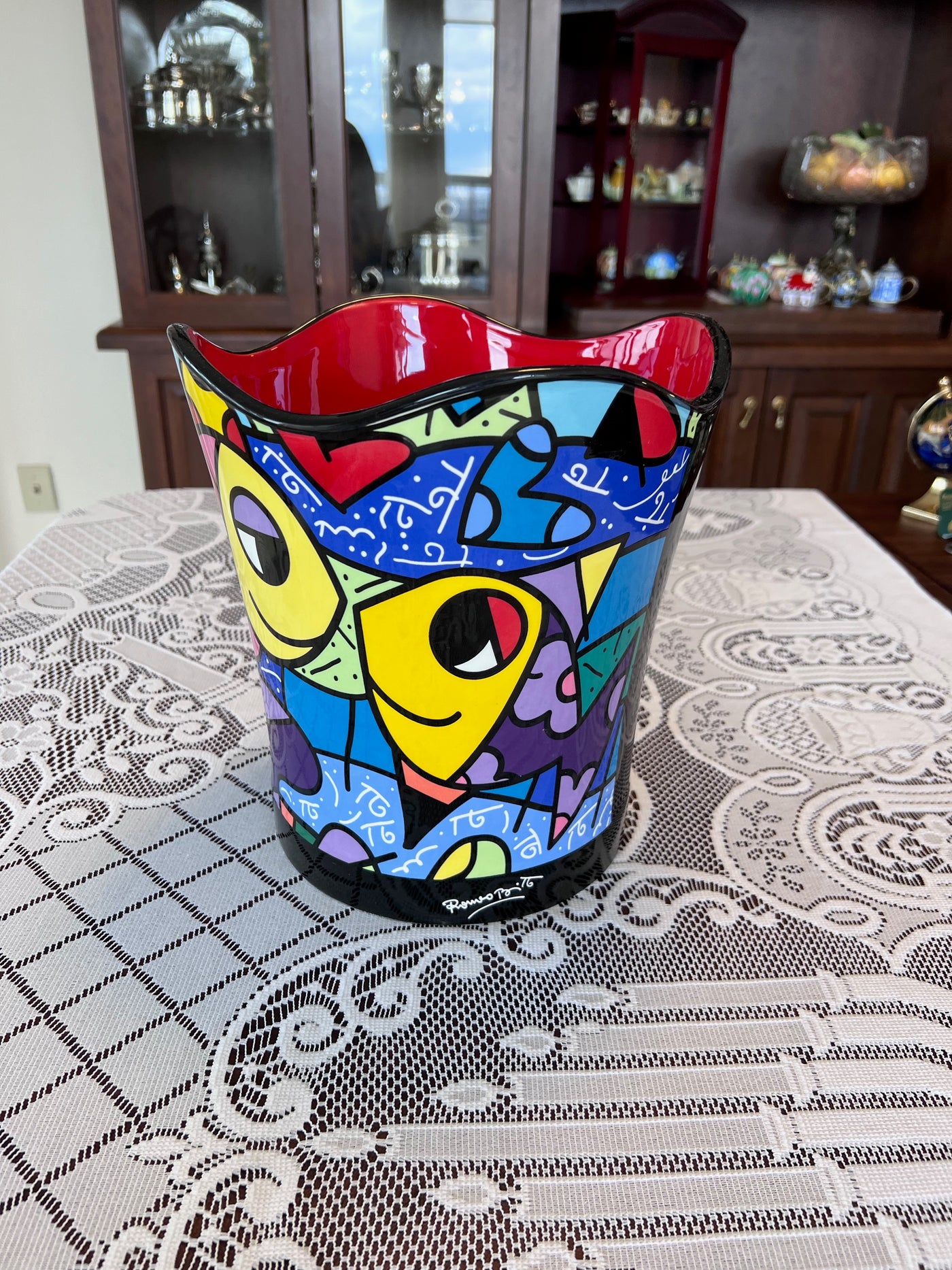 ROMERO BRITTO "DEEPLY IN LOVE" CERAMIC WASTEBASKET.