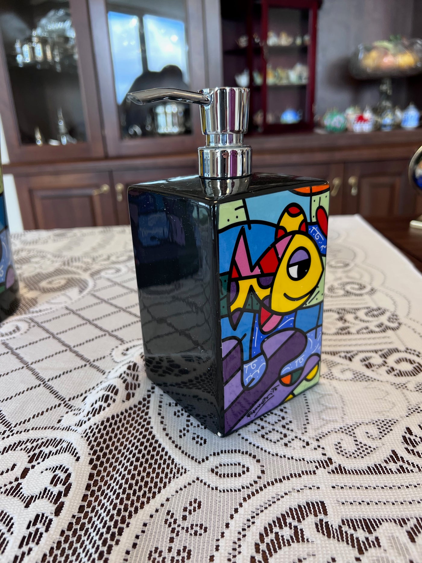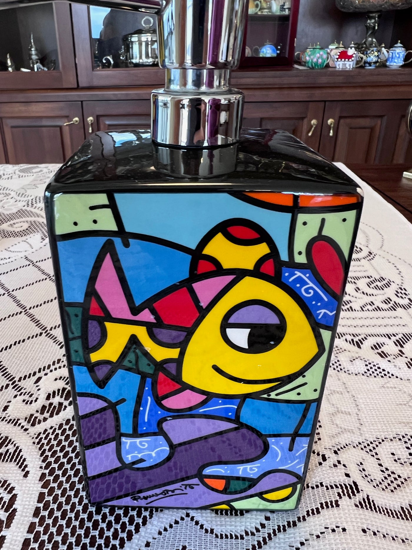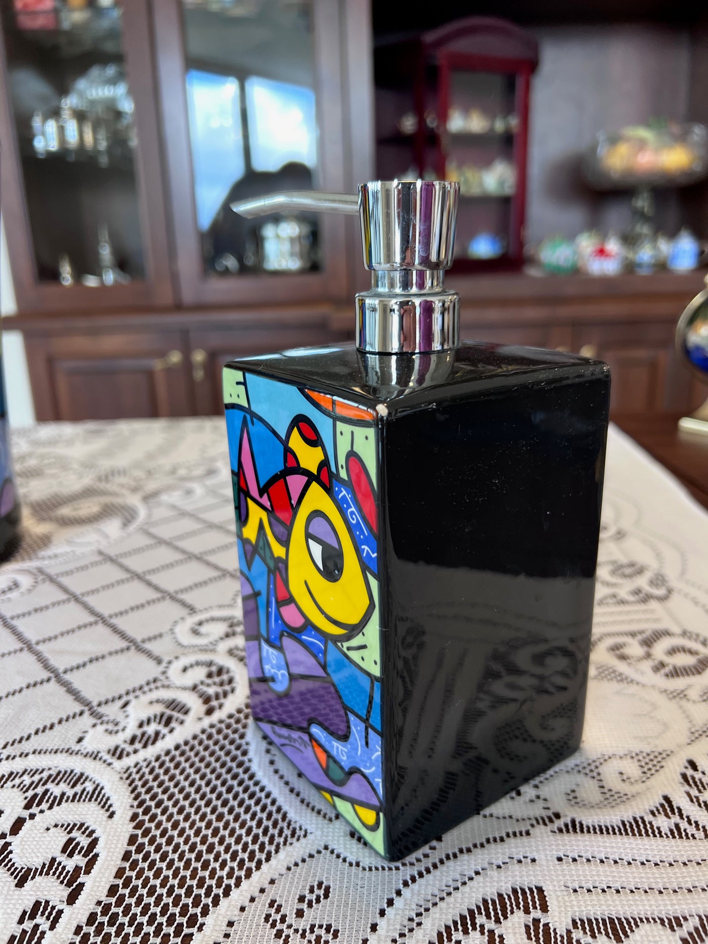 ROMERO BRITTO "DEEPLY IN LOVE" CERAMIC SOAP DISPENSER.
