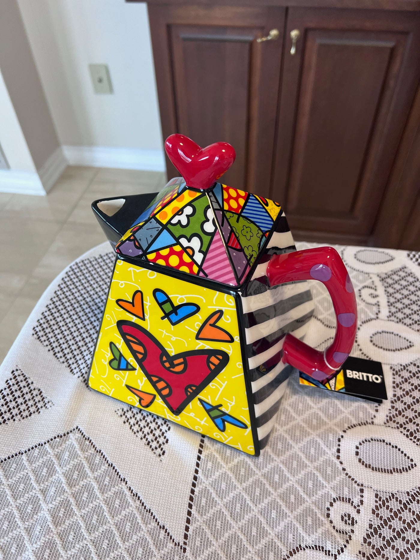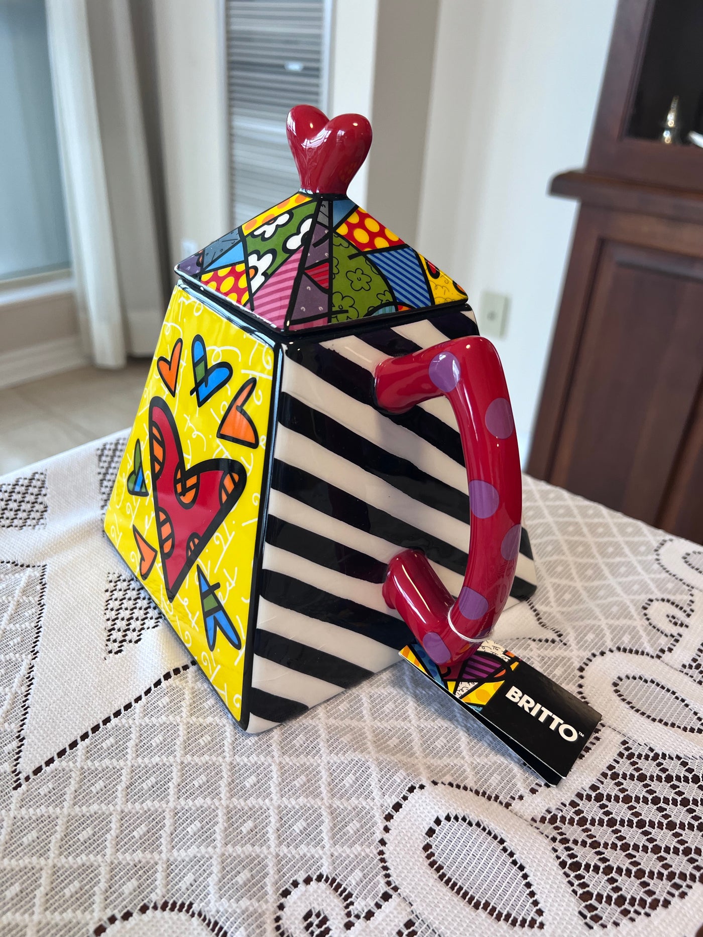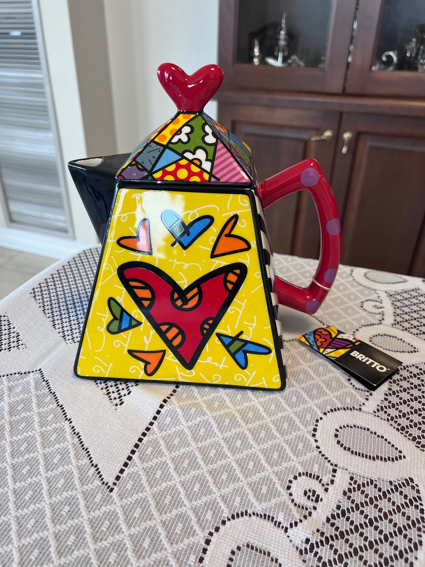 ROMERO BRITTO CERAMIC "2 HEARTS" TEAPOT 339045.