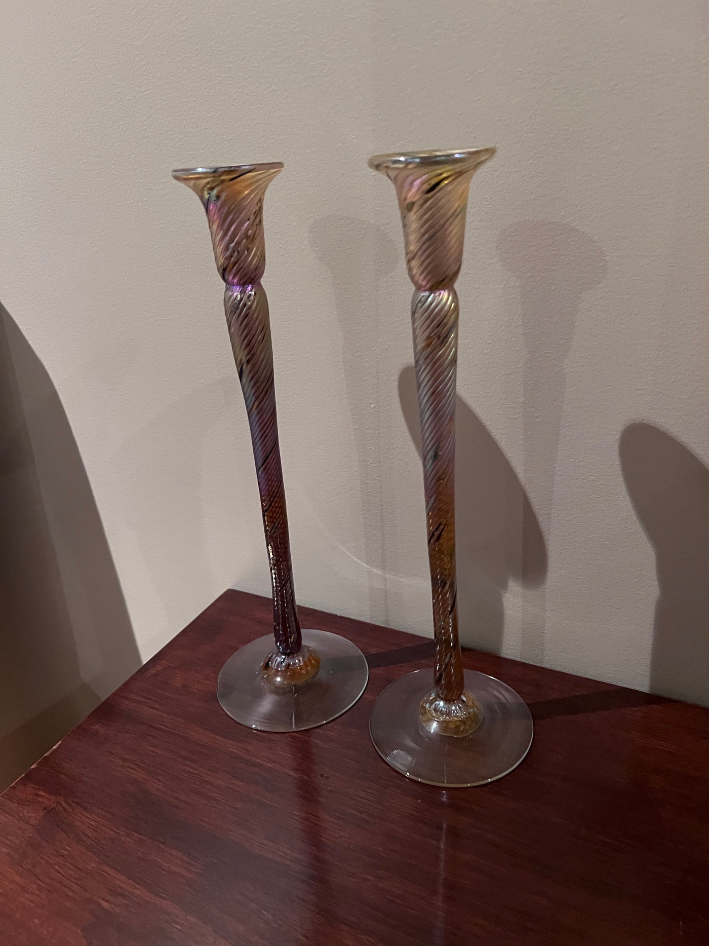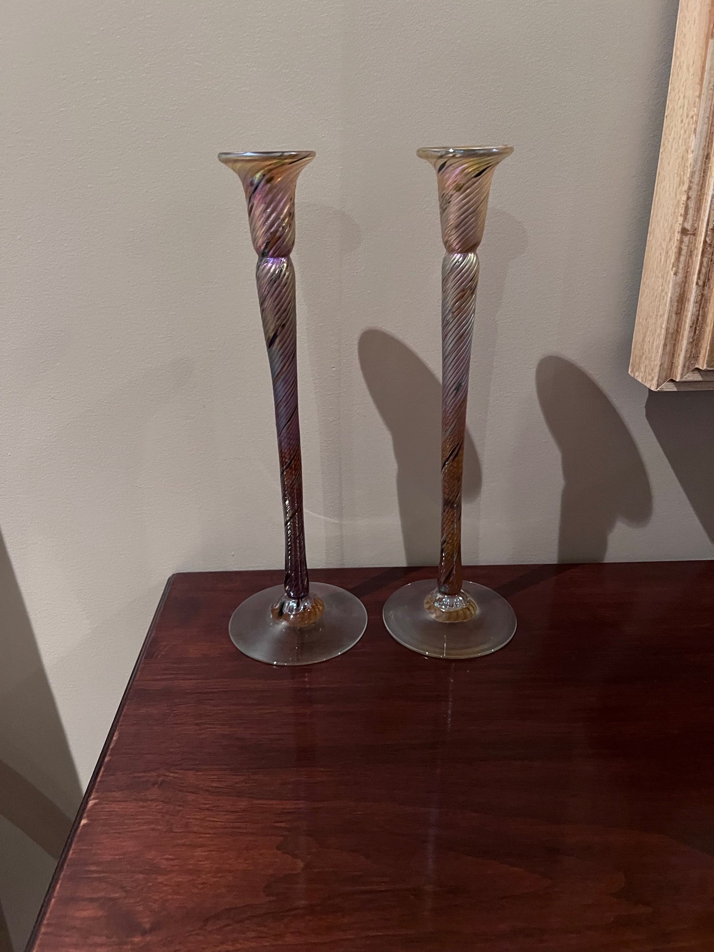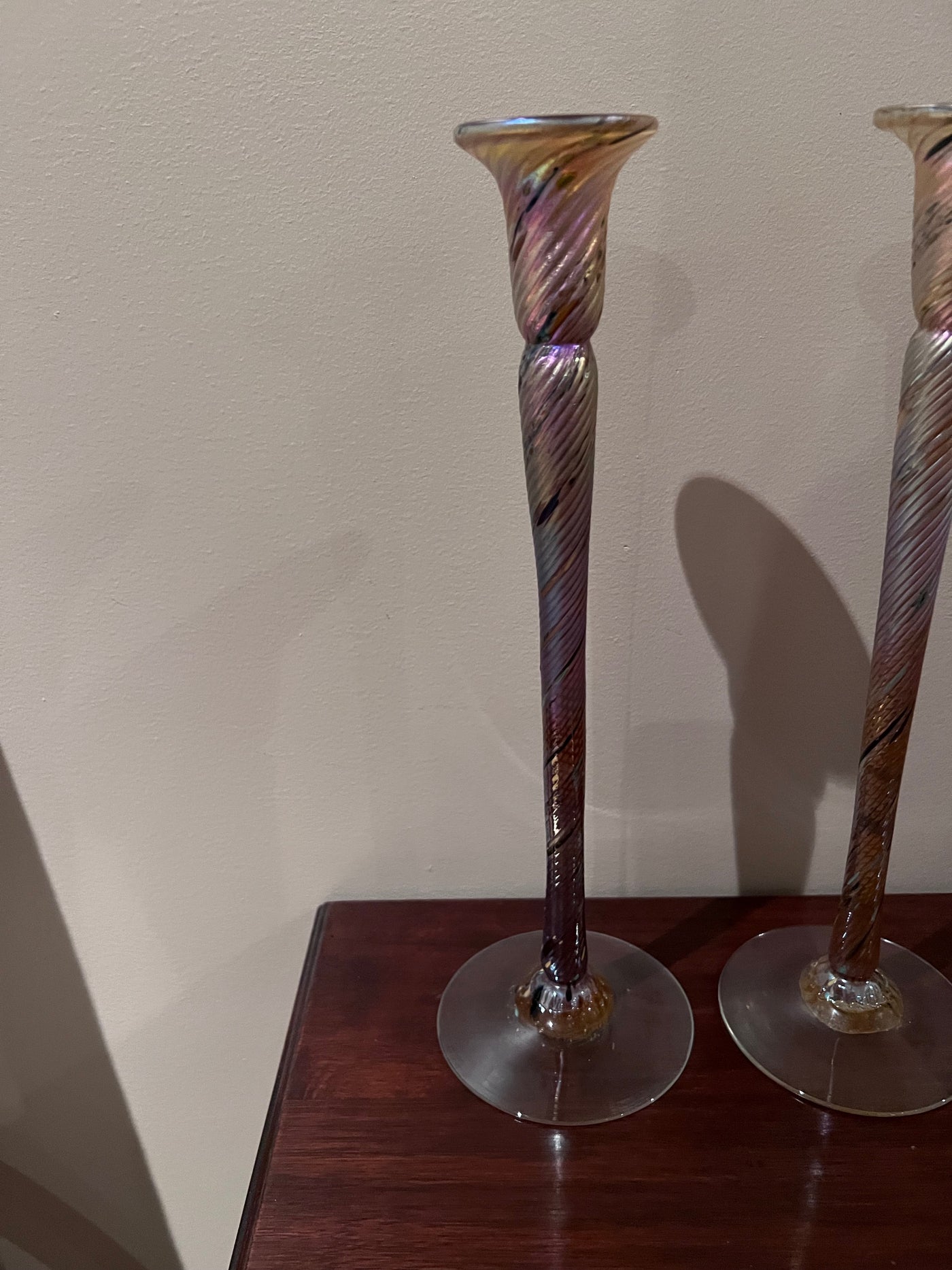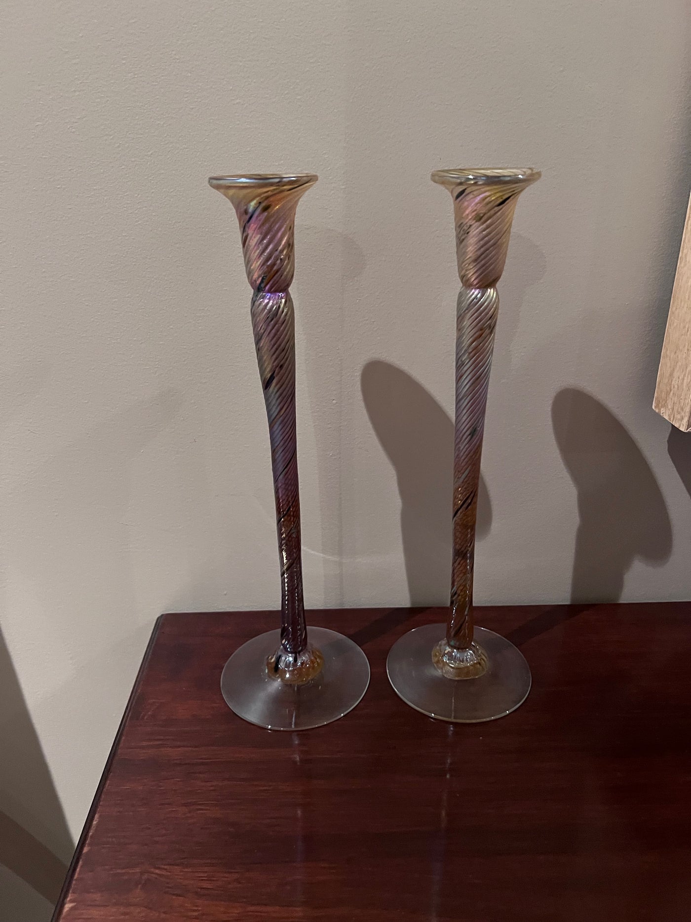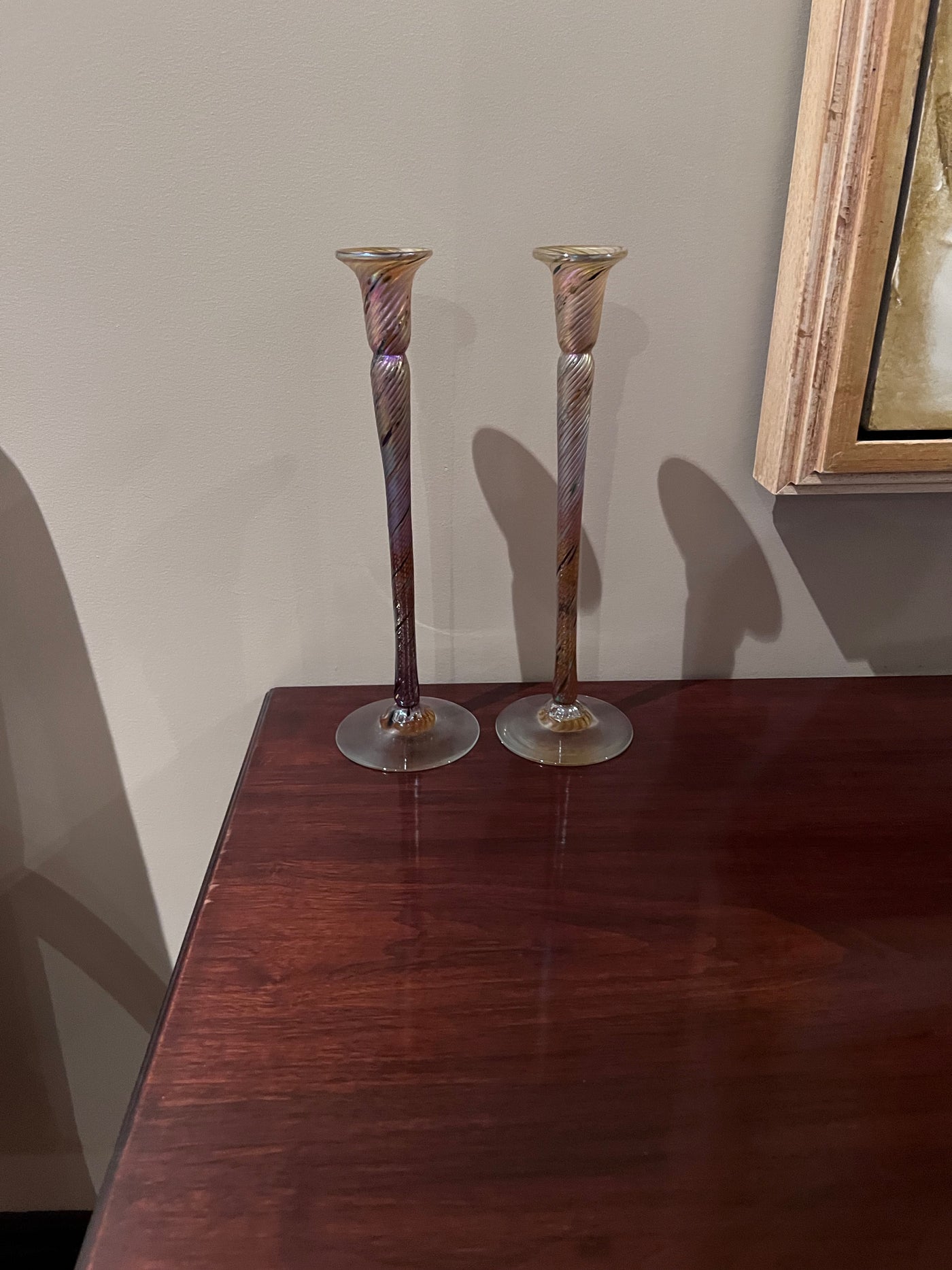 Pair of Robert Held Glass Candle Holders. In excellent condition.