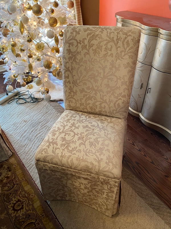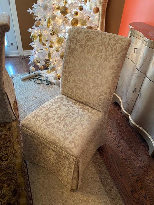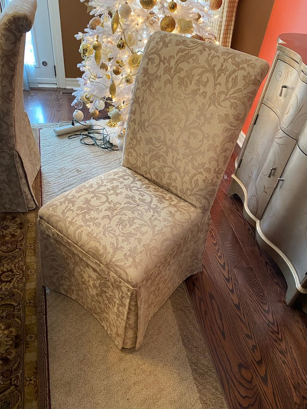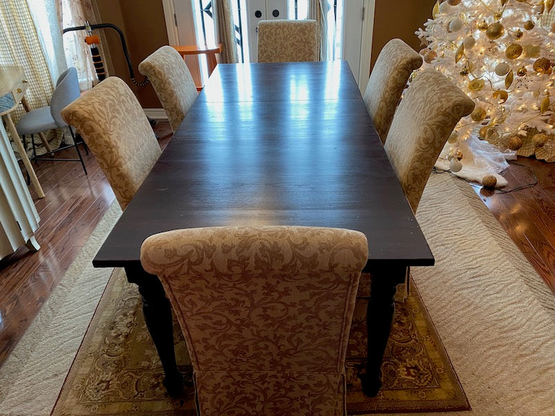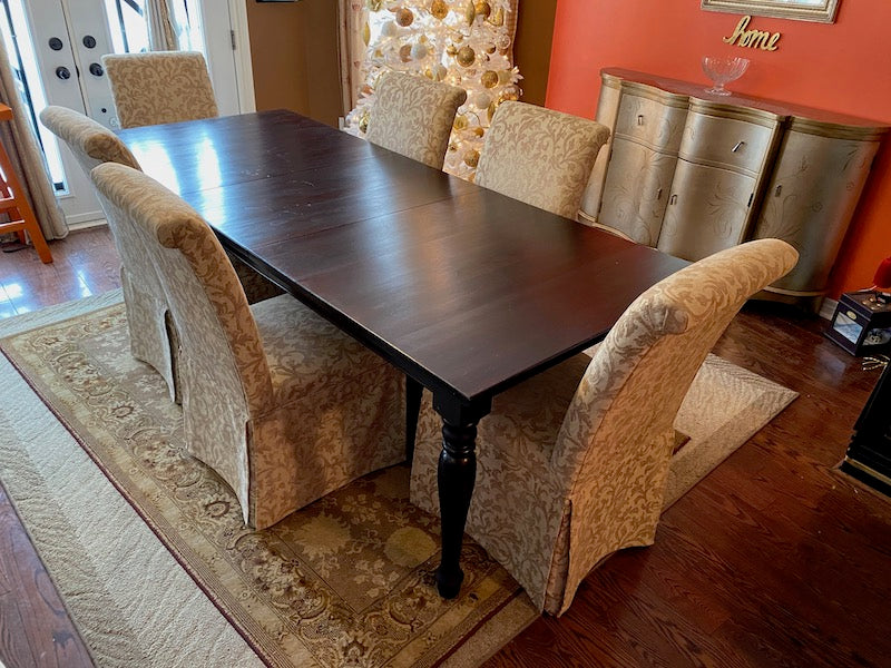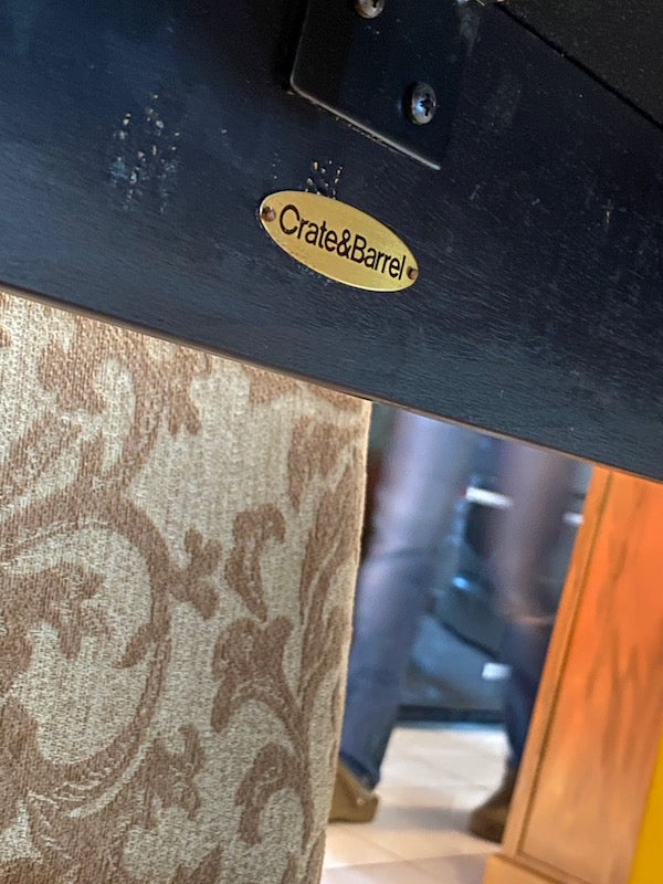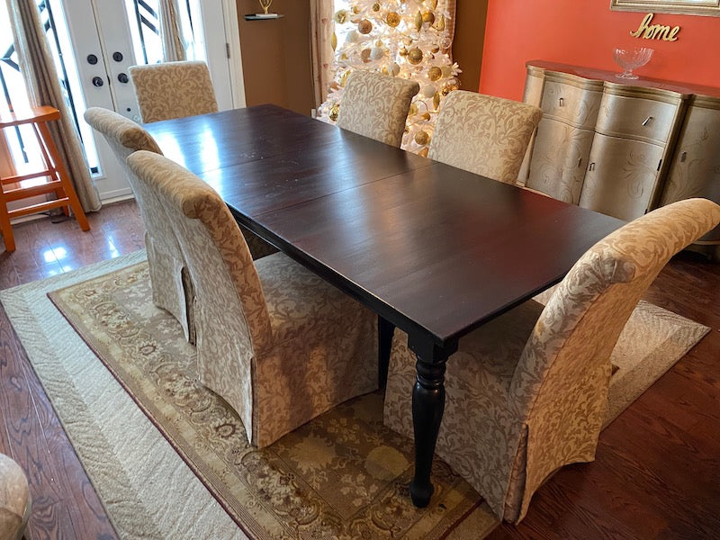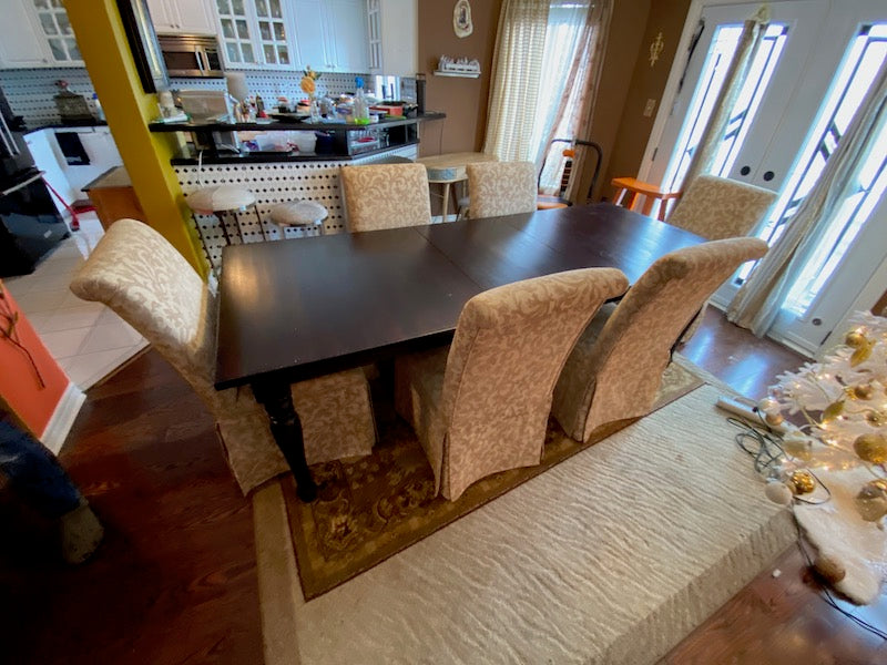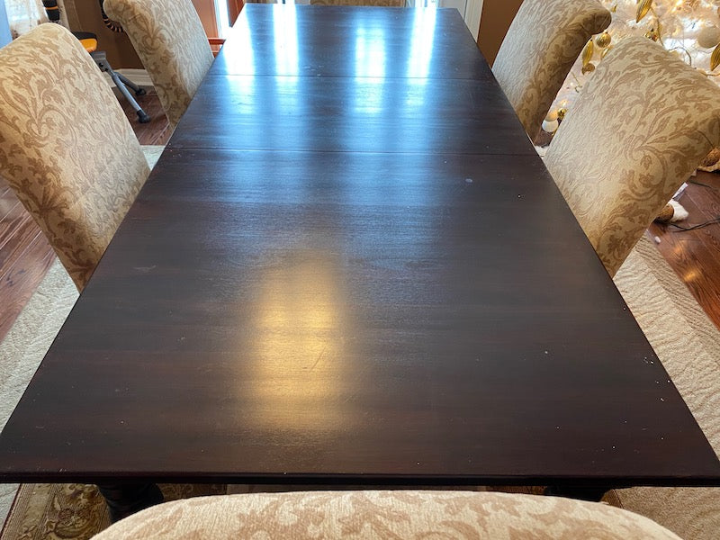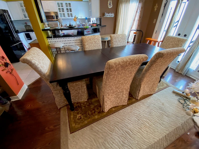Crate & Barrel Wood Dining Table + 6 Beige Chairs.