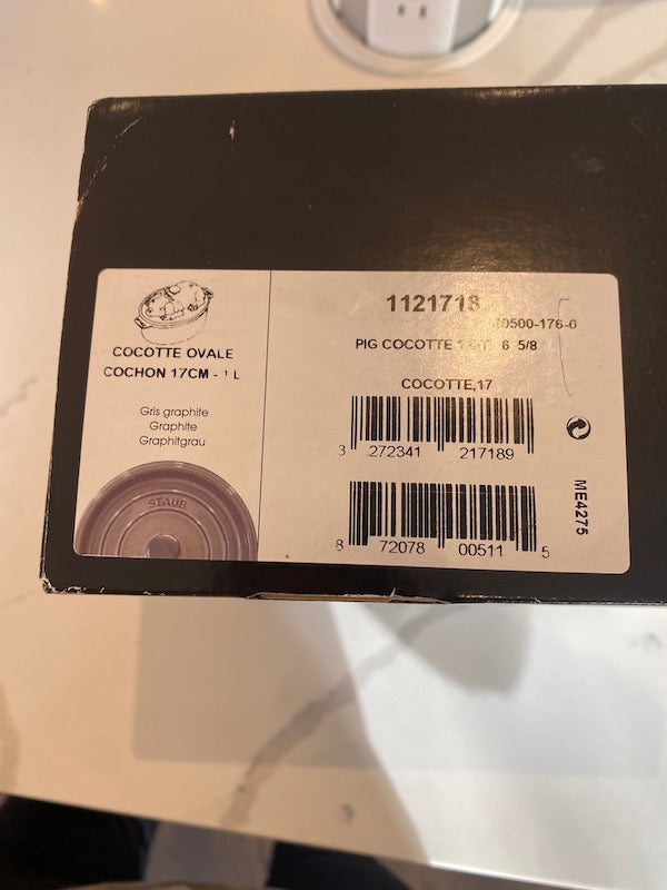 Brand New Staub Cast Iron 1 qt. Pig Cocotte - Graphite Grey.